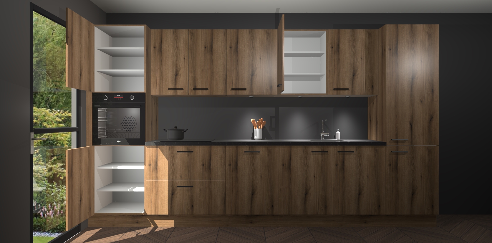 Dit is de perfecte keuken voor wie op zoek is naar een luxueuze stijl zonder zijn portemonnee te legen! Het chique ontwerp van de goud eiken keuken Wels voegt dat vleugje verfijning toe aan elk huis. Het gemak van voorgemonteerde kasten bespaart u talloze uren tijd en energie, zodat u veel sneller dan verwacht kunt beginnen te genieten van uw prachtige nieuwe keuken. Bovendien bedraagt de levertijd slechts 7 weken.