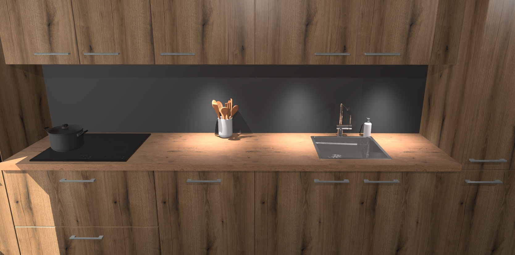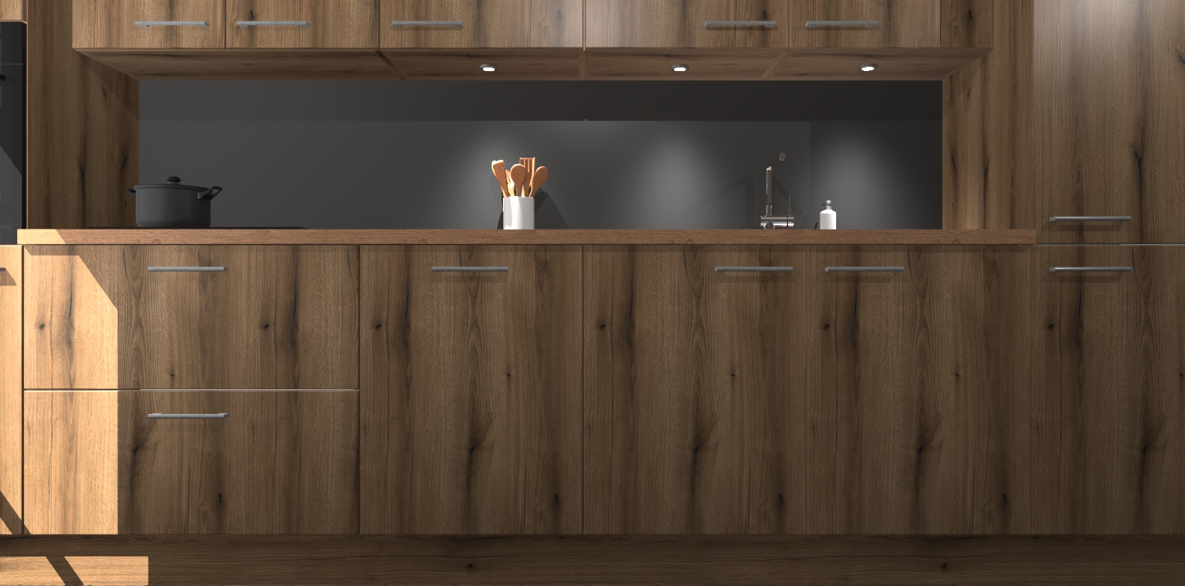 Dit is de perfecte keuken voor wie op zoek is naar een luxueuze stijl zonder zijn portemonnee te legen! Het chique ontwerp van de goud eiken keuken Wels voegt dat vleugje verfijning toe aan elk huis. Het gemak van voorgemonteerde kasten bespaart u talloze uren tijd en energie, zodat u veel sneller dan verwacht kunt beginnen te genieten van uw prachtige nieuwe keuken. Bovendien bedraagt de levertijd slechts 7 weken.