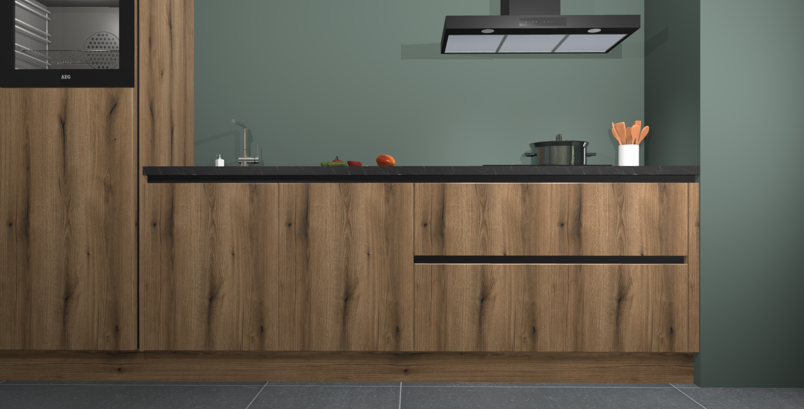 Maak kennis met de gloednieuwe Gouden eiken keuken Belize! Met zijn chique, moderne uitstraling is dit product perfect voor iedereen die een warm en toch strak design voor zijn huis wil.