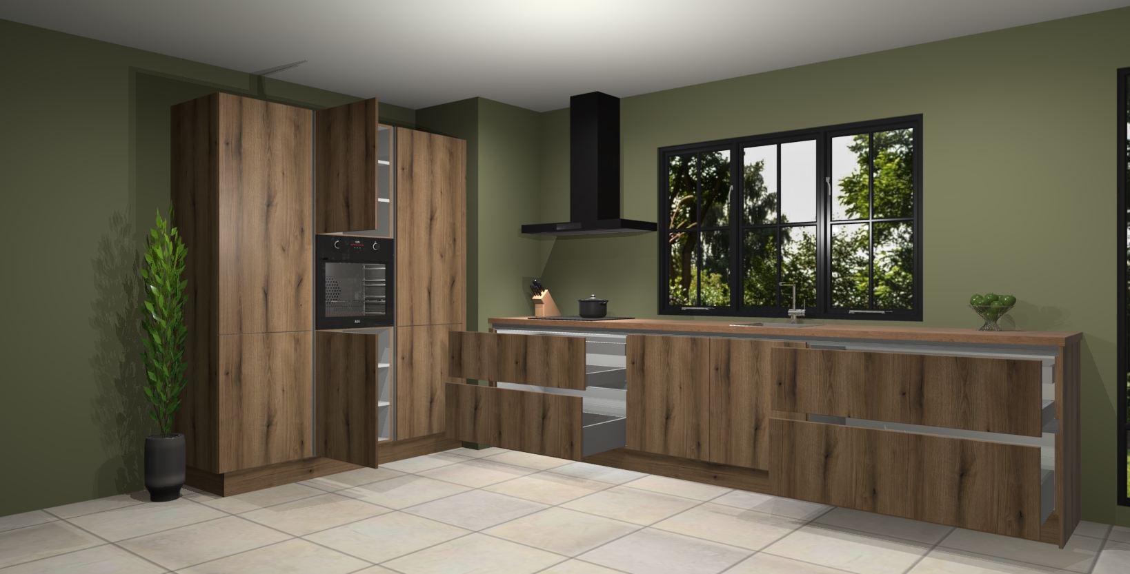 De softclose deuren openen en sluiten is ook heel eenvoudig - geniet van een moeiteloze keukenervaring, zelfs als er kinderen rondlopen. Voor extra gemak bij het plaatsen van uw bestelling bieden we ook een upgrade naar een kookplaat met geïntegreerde afzuiging.
