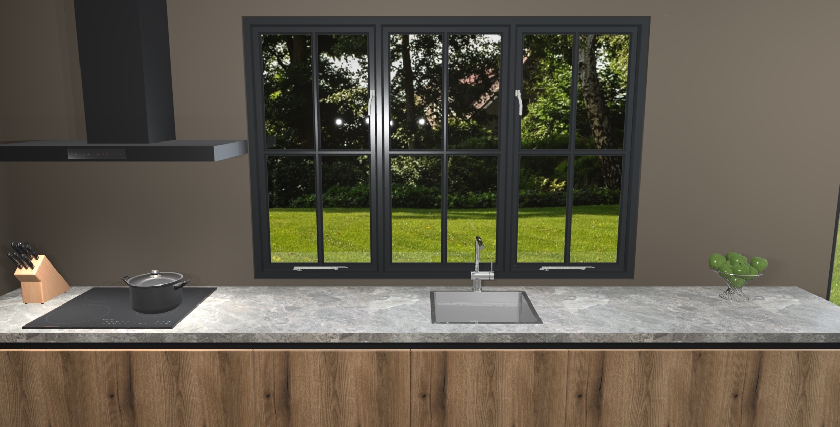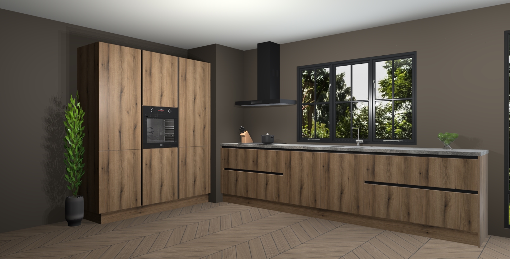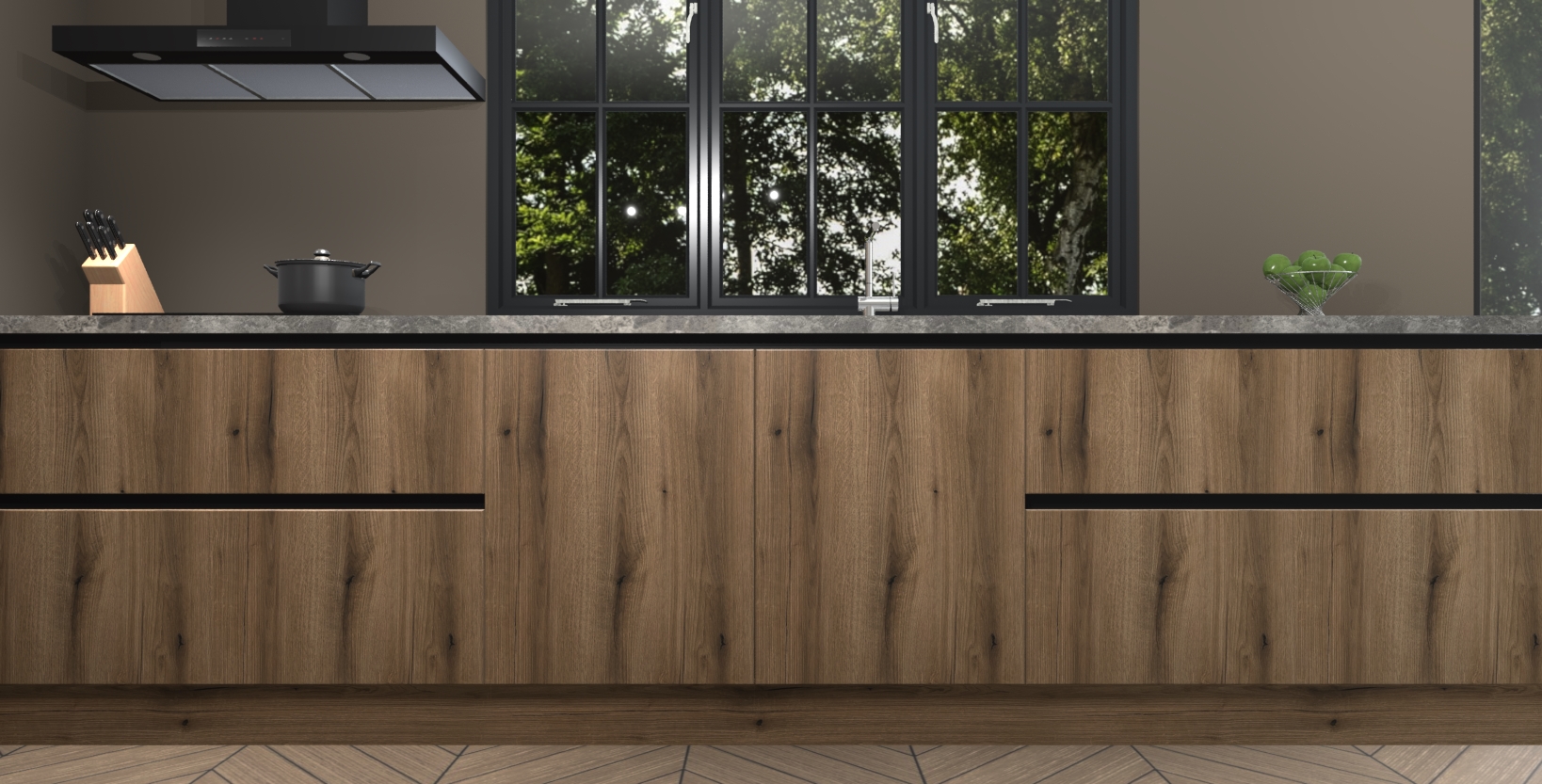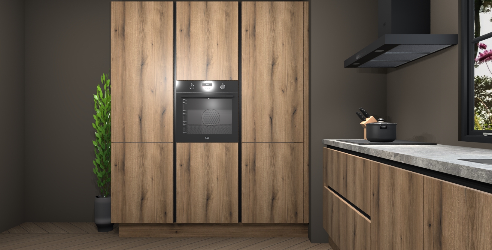 De softclose deuren openen en sluiten is ook heel eenvoudig - geniet van een moeiteloze keukenervaring, zelfs als er kinderen rondlopen. Voor extra gemak bij het plaatsen van uw bestelling bieden we ook een upgrade naar een kookplaat met geïntegreerde afzuiging.