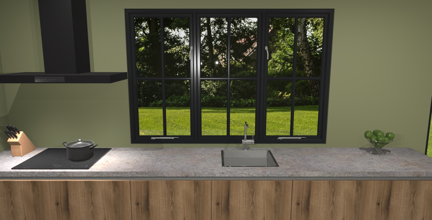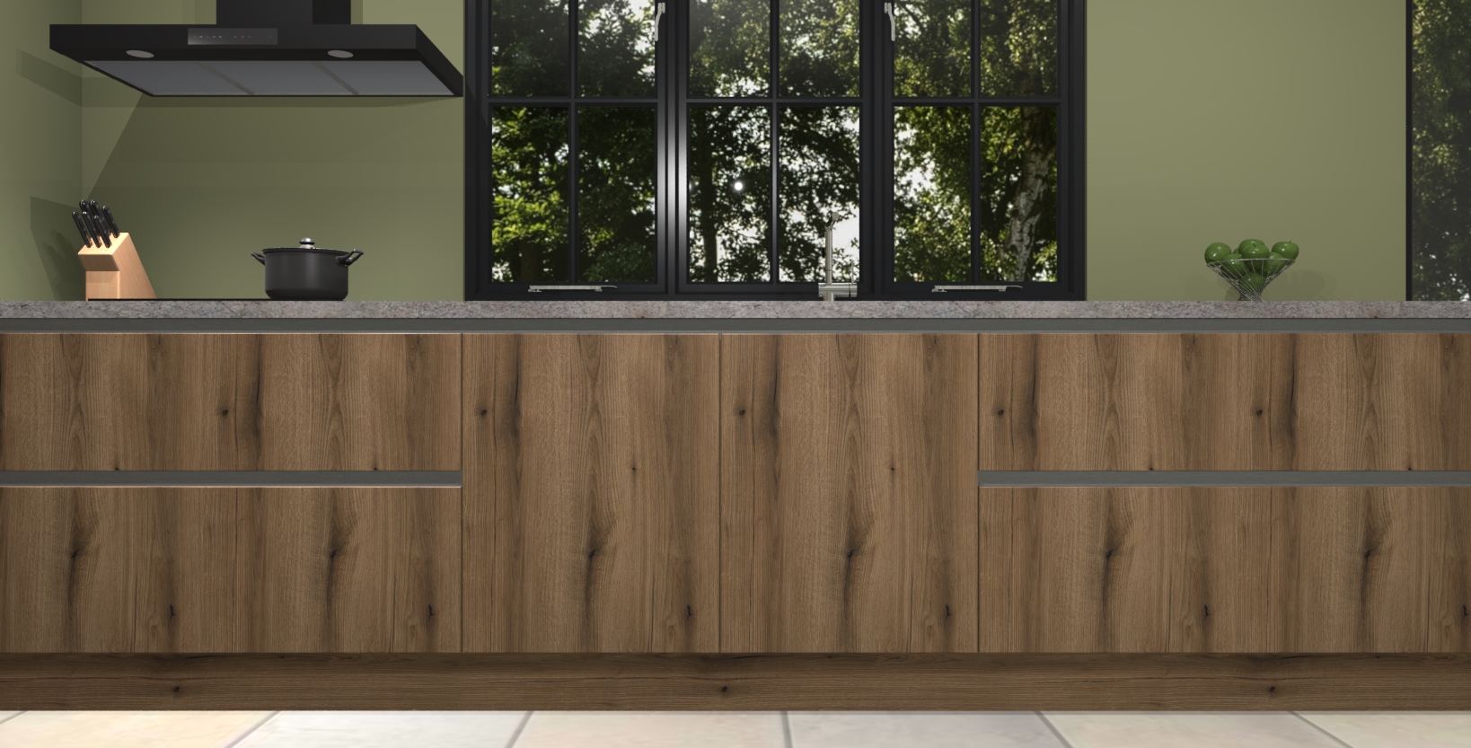 De softclose deuren openen en sluiten is ook heel eenvoudig - geniet van een moeiteloze keukenervaring, zelfs als er kinderen rondlopen. Voor extra gemak bij het plaatsen van uw bestelling bieden we ook een upgrade naar een kookplaat met geïntegreerde afzuiging.