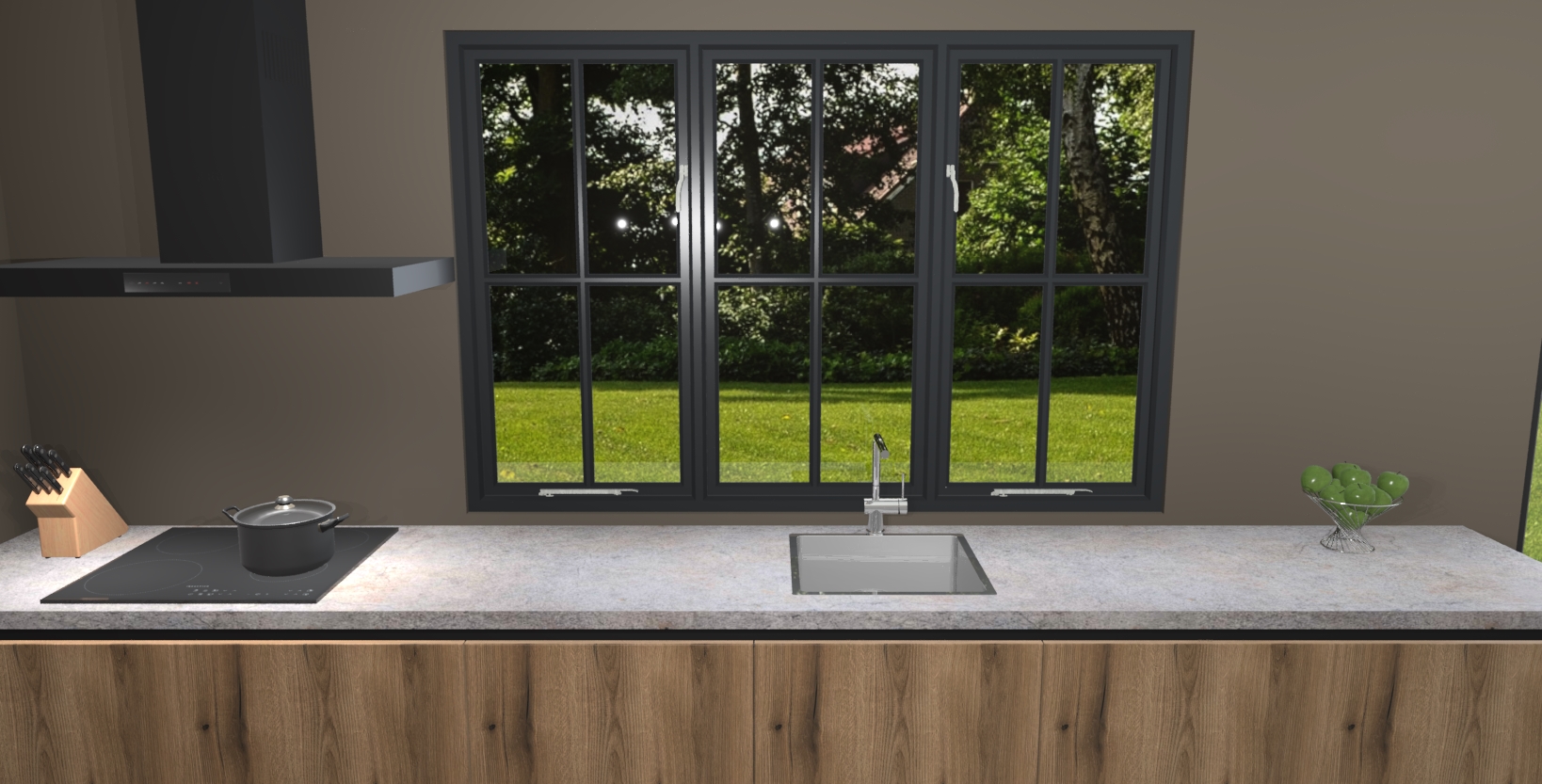 De softclose deuren openen en sluiten is ook heel eenvoudig - geniet van een moeiteloze keukenervaring, zelfs als er kinderen rondlopen. Voor extra gemak bij het plaatsen van uw bestelling bieden we ook een upgrade naar een kookplaat met geïntegreerde afzuiging.
