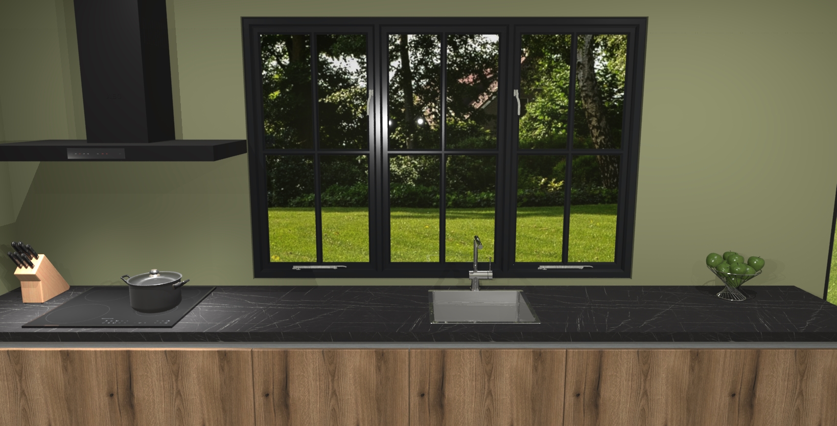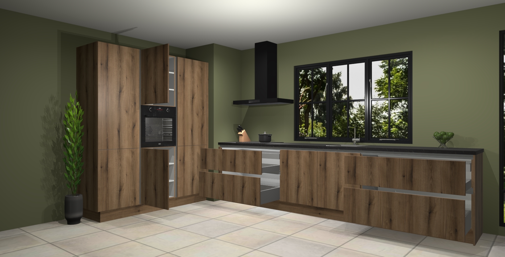 De softclose deuren openen en sluiten is ook heel eenvoudig - geniet van een moeiteloze keukenervaring, zelfs als er kinderen rondlopen. Voor extra gemak bij het plaatsen van uw bestelling bieden we ook een upgrade naar een kookplaat met geïntegreerde afzuiging.