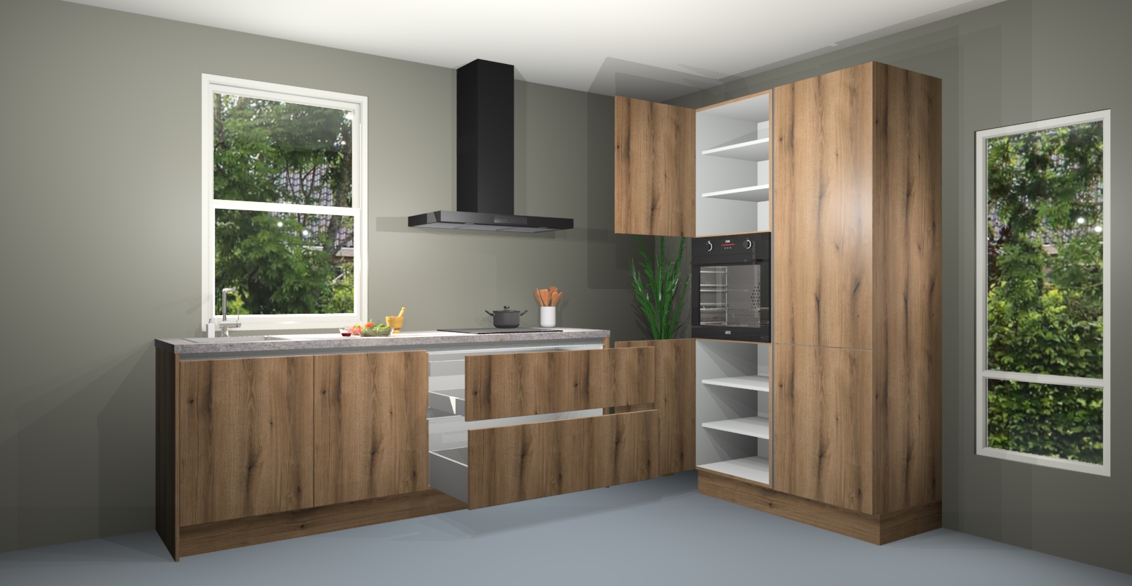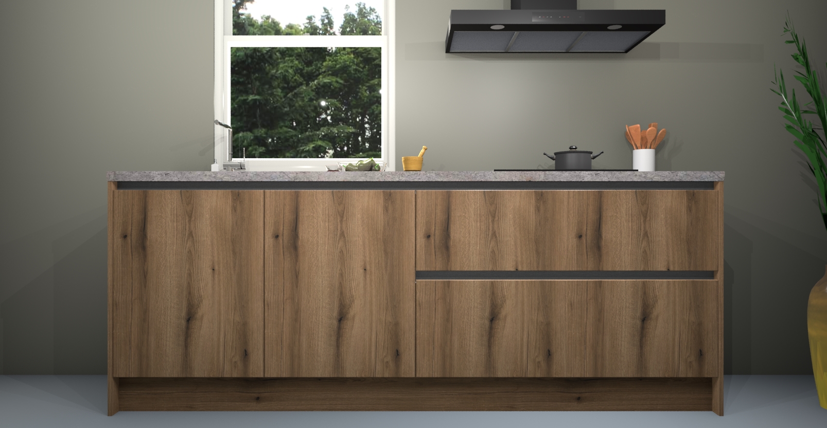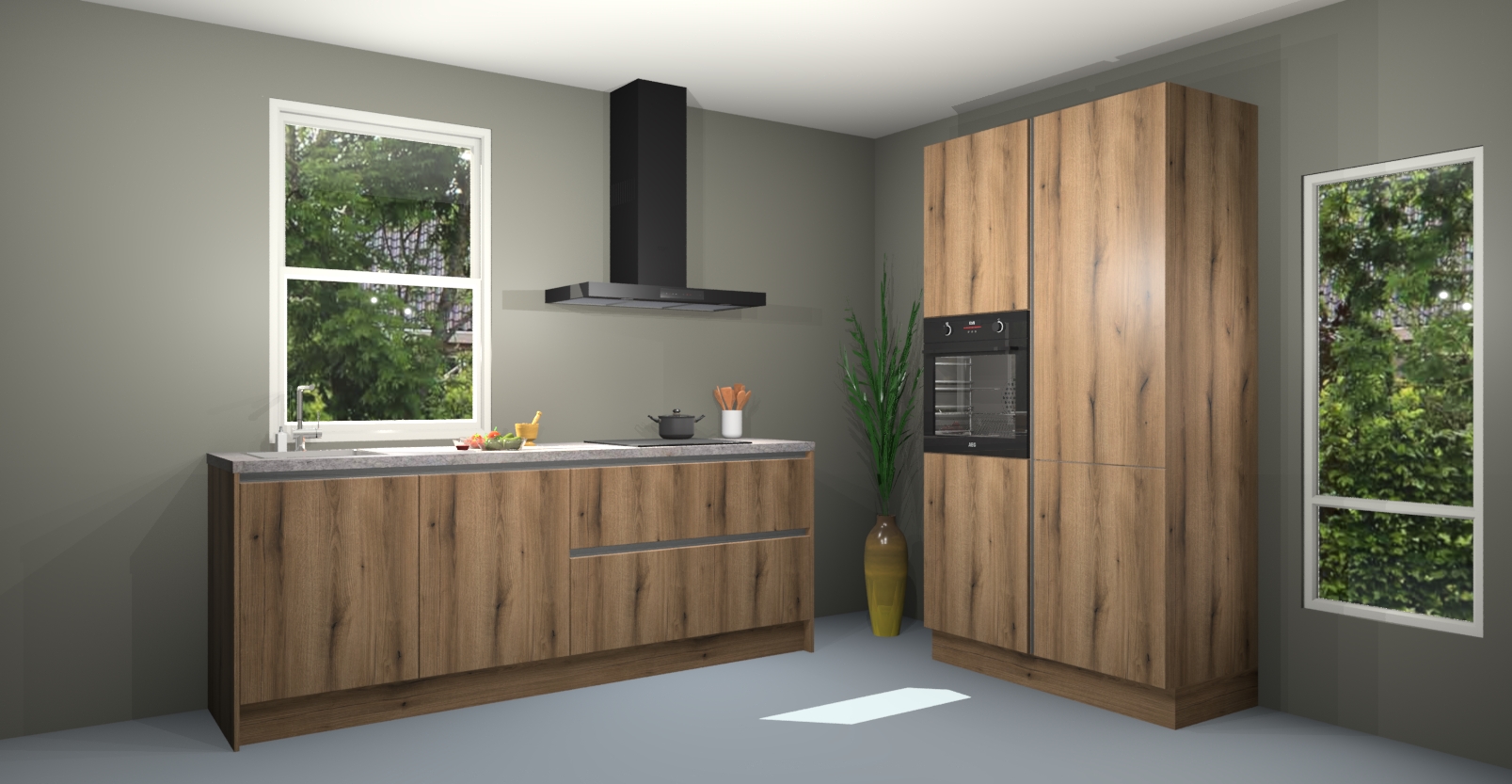 Ervaar het ultieme gevoel van warmte en gezelligheid in uw huis met de luxe Gouden eiken greeploze keuken Monaco! Deze ongelooflijk sfeervolle houtlook straalt heerlijke warmte uit en tovert elke keuken om tot een gezellig familiecentrum. Breng uw dromen tot leven met deze unieke keuken, ontworpen voor moeiteloze luxe en functionaliteit.