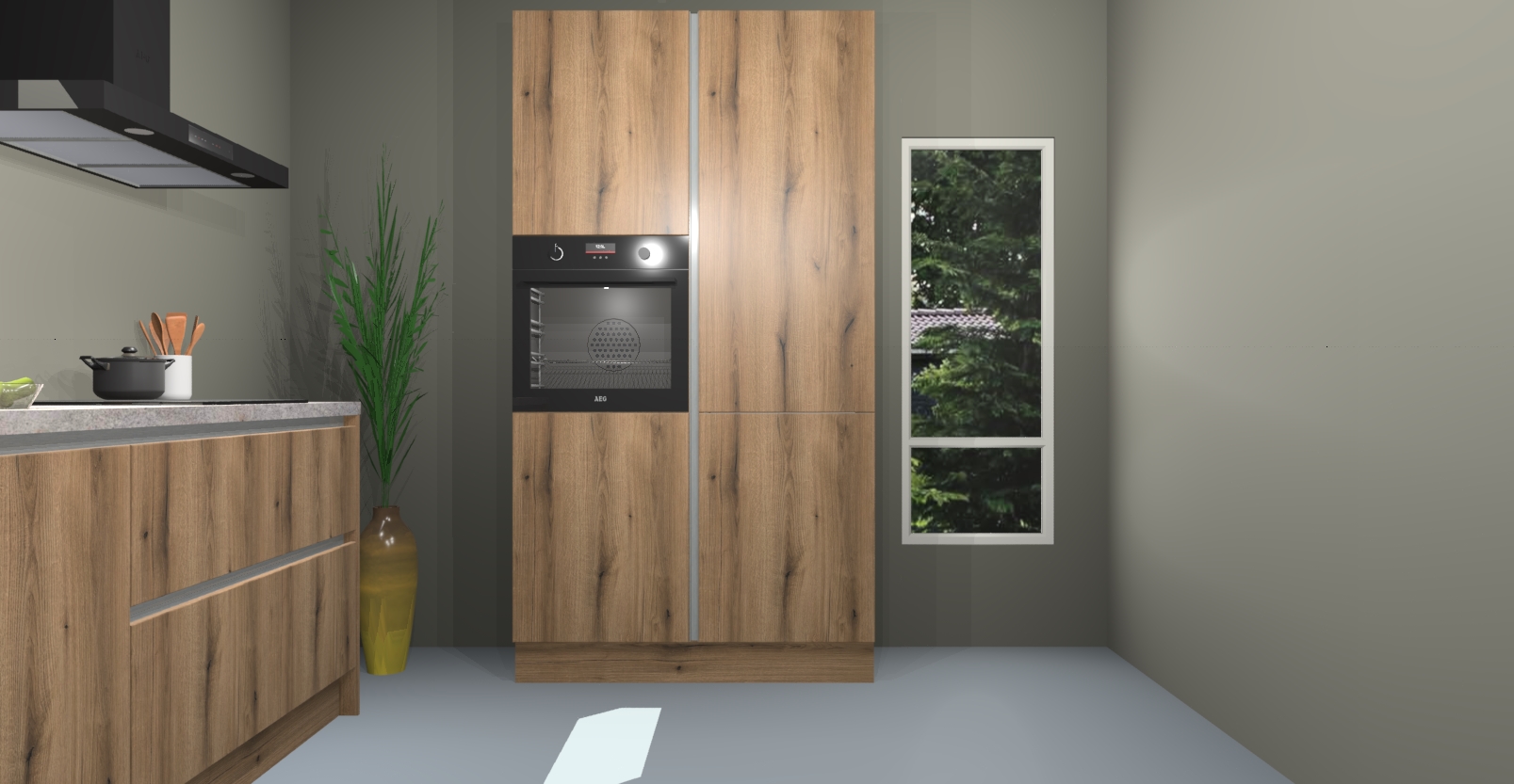 De Gouden eiken greeploze keuken Monaco heeft voldoende opbergruimte om uw keukenbenodigdheden georganiseerd en netjes te houden. Geniet van het gemak van de soft-close deuren, die deze stijlvolle look perfect afmaken. Maar dat is nog niet alles. Met de Gouden eiken greeploze keuken Monaco krijgt u maar liefst 5 ingebouwde apparaten: een oven, inductiekookplaat, afzuigkap, vaatwasser en koelkast. Deze kunnen gemakkelijk worden geüpgraded naar AEG als ze besteld zijn.
