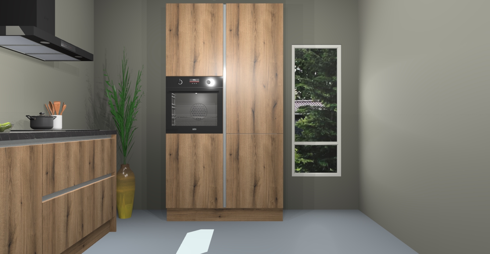 De Gouden eiken greeploze keuken Monaco heeft voldoende opbergruimte om uw keukenbenodigdheden georganiseerd en netjes te houden. Geniet van het gemak van de soft-close deuren, die deze stijlvolle look perfect afmaken. Maar dat is nog niet alles. Met de Gouden eiken greeploze keuken Monaco krijgt u maar liefst 5 ingebouwde apparaten: een oven, inductiekookplaat, afzuigkap, vaatwasser en koelkast. Deze kunnen gemakkelijk worden geüpgraded naar AEG als ze besteld zijn.