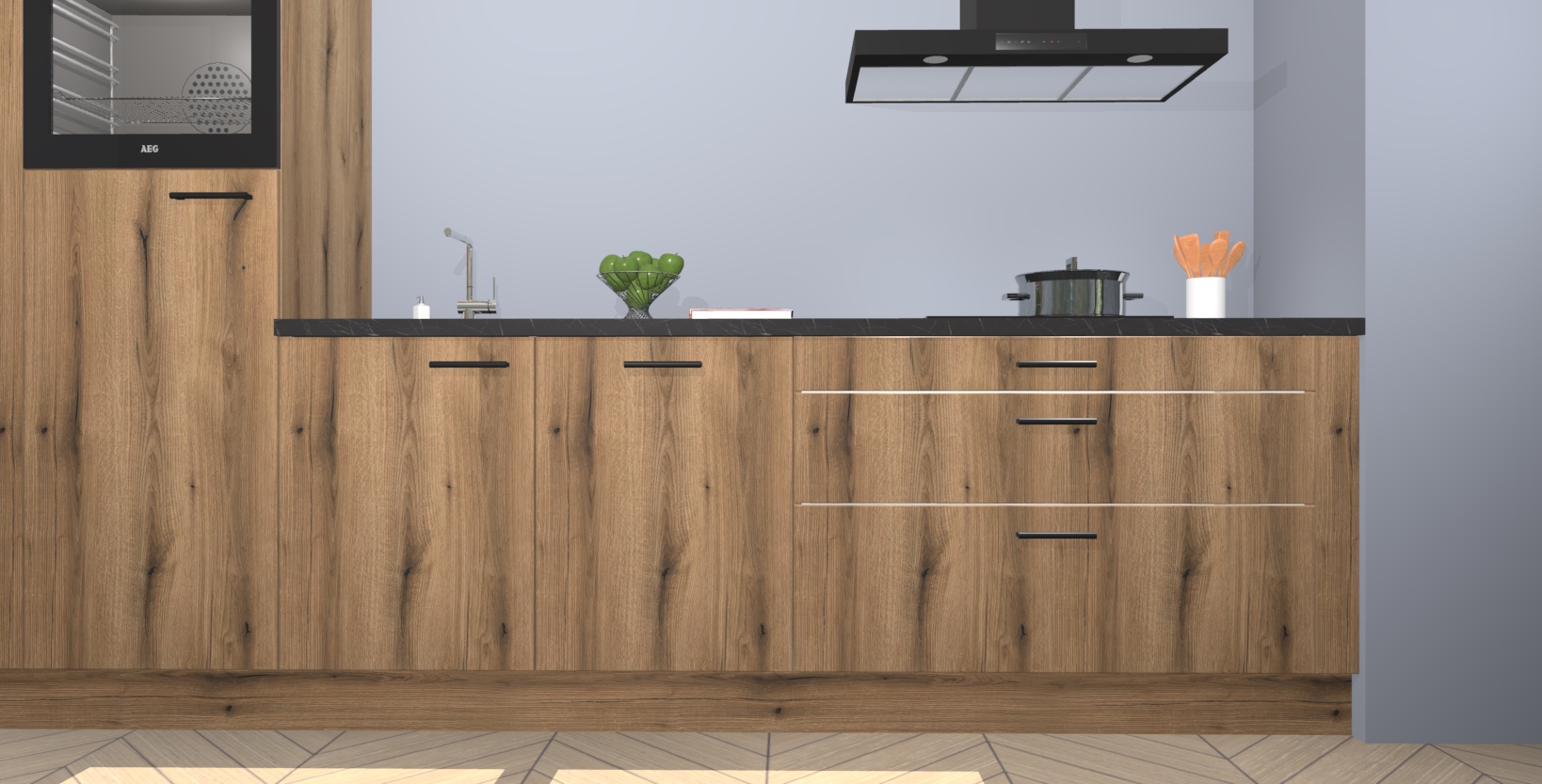 De Gouden eiken keuken Belize is gemaakt van de beste materialen op de markt, dus u kunt erop vertrouwen dat hij u niet in de steek zal laten. Bovendien kunt u hem gemakkelijk upgraden naar het AEG-model als u er nog meer uit wilt halen!
