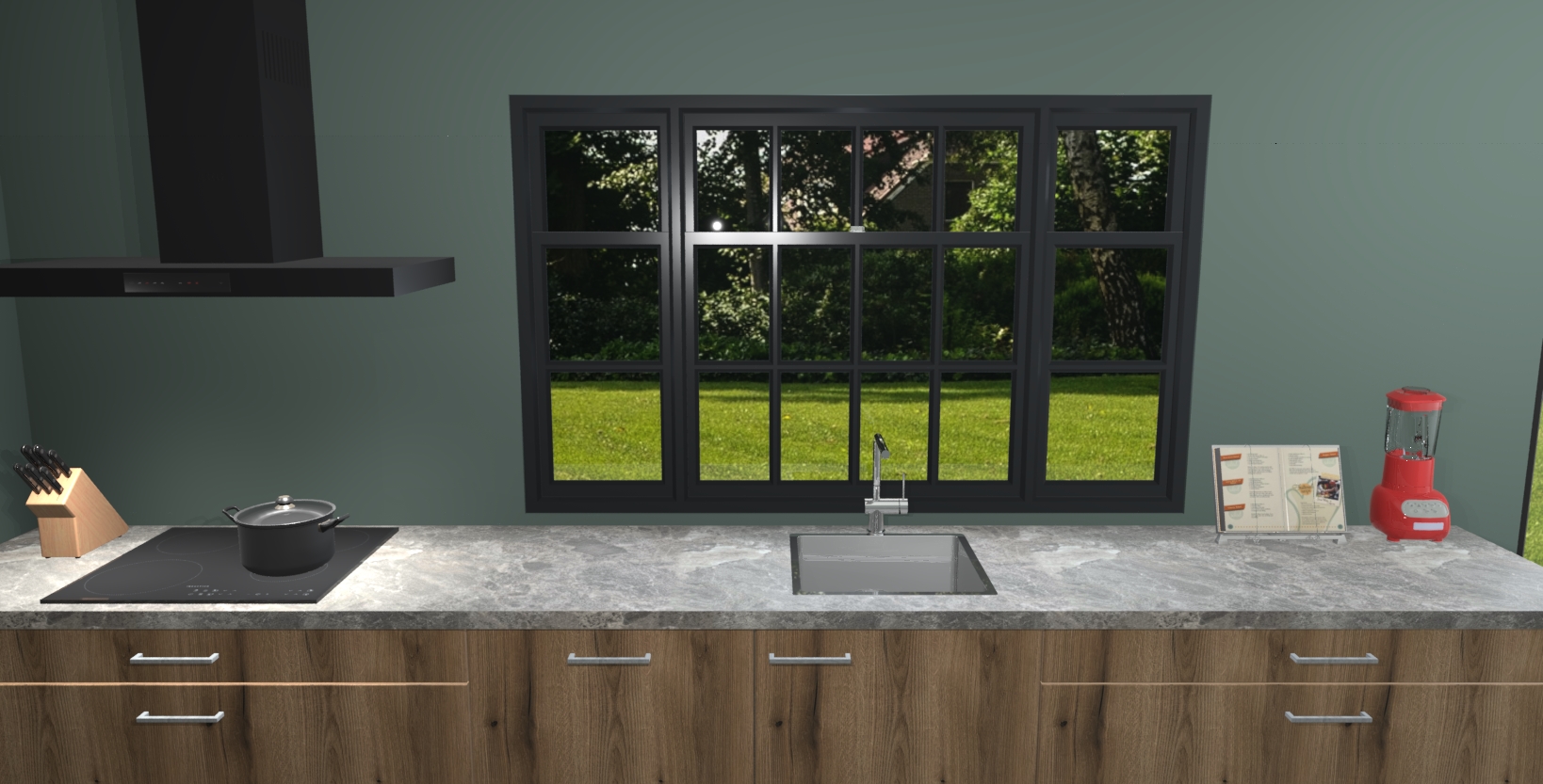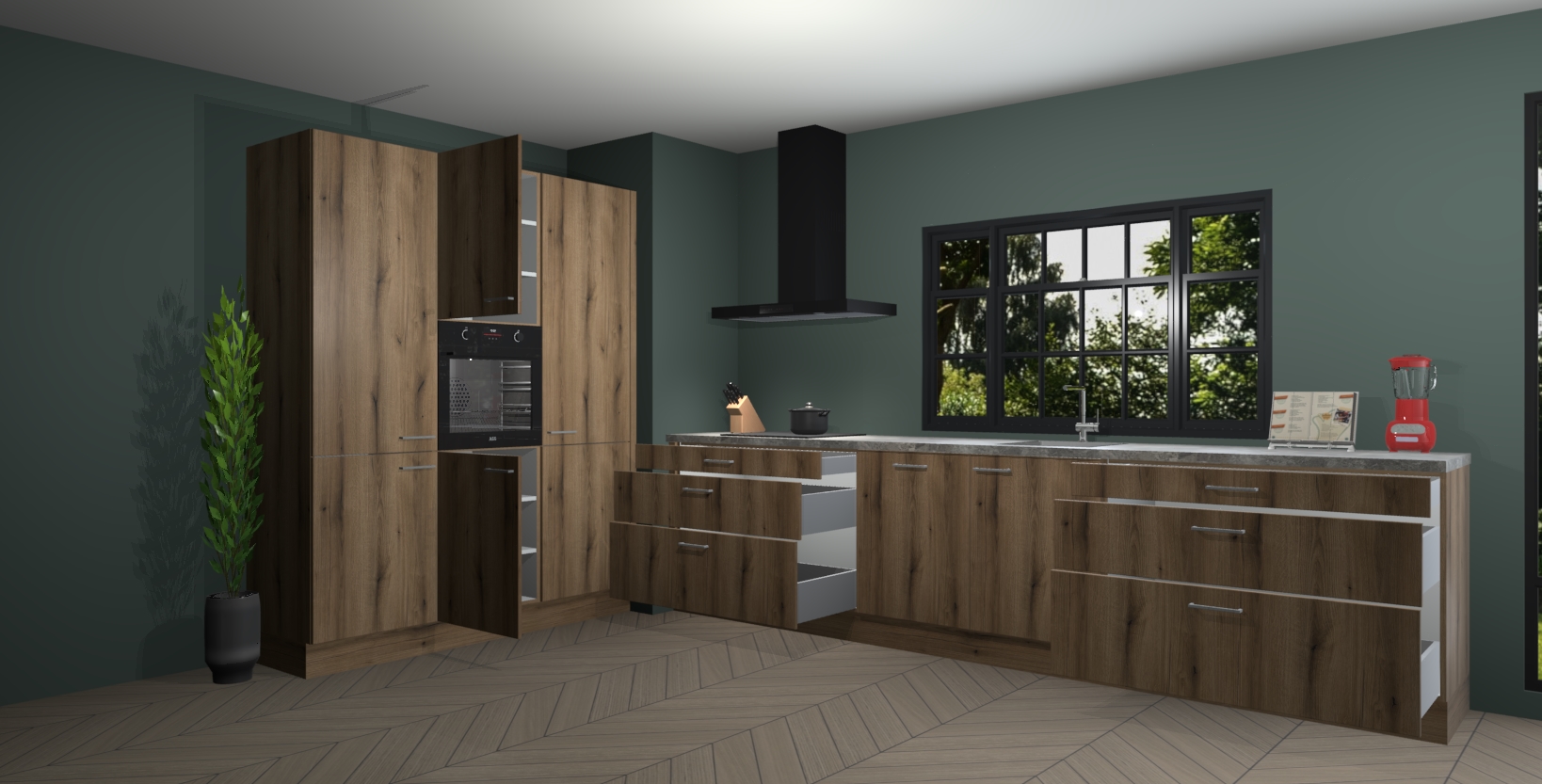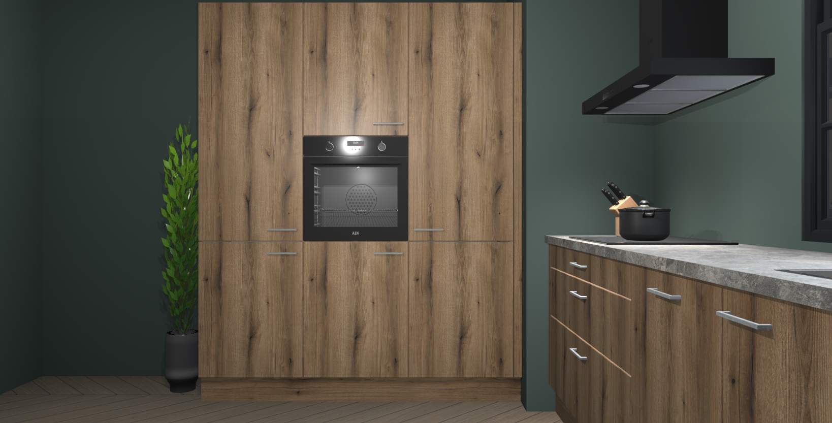 De softclose deuren openen en sluiten is ook heel eenvoudig - geniet van een moeiteloze keukenervaring, zelfs als er kinderen rondlopen. Voor extra gemak bij het plaatsen van uw bestelling bieden we ook een upgrade naar een kookplaat met geïntegreerde afzuiging.