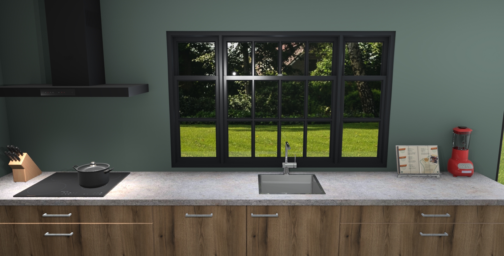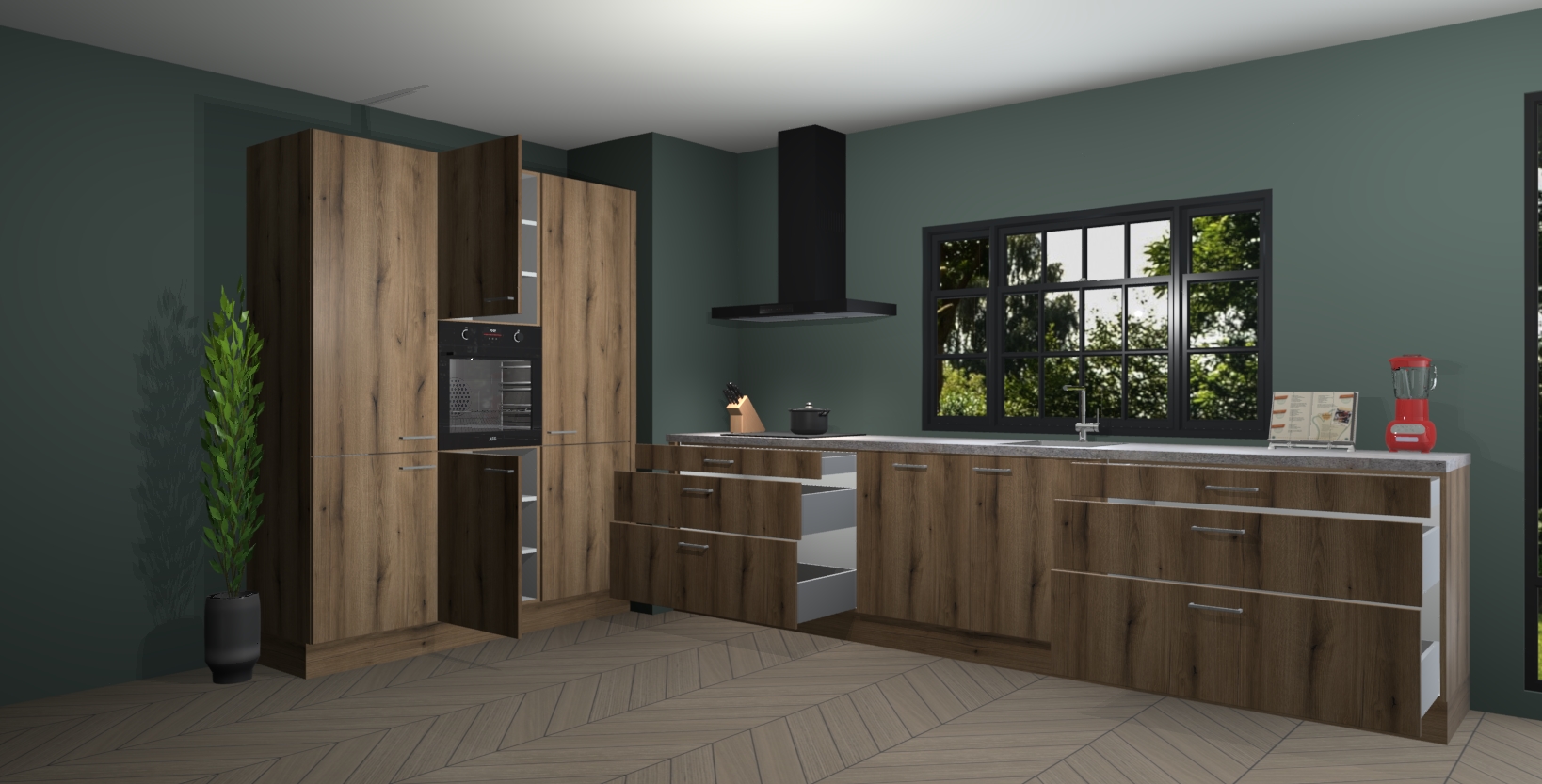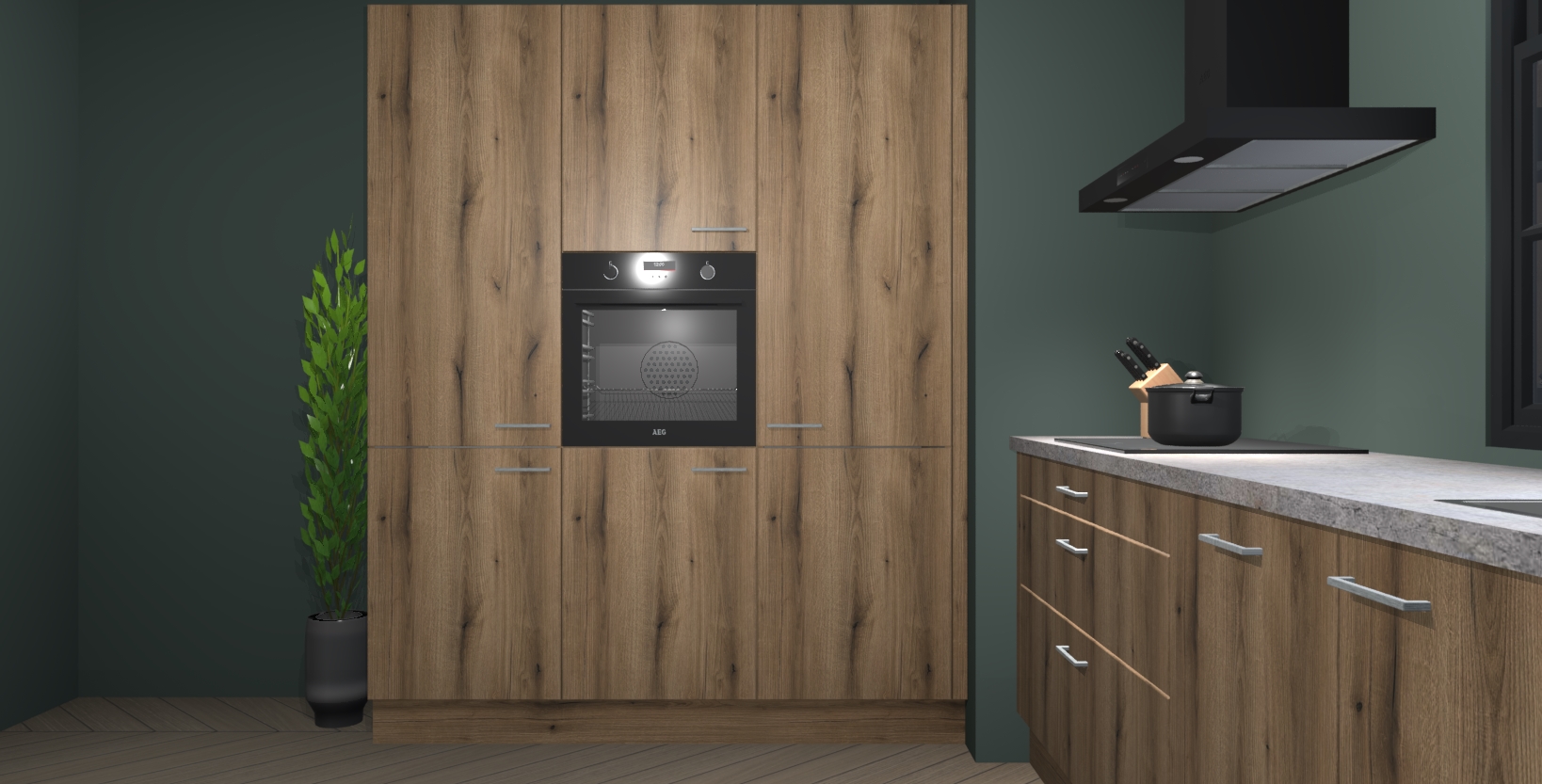 De softclose deuren openen en sluiten is ook heel eenvoudig - geniet van een moeiteloze keukenervaring, zelfs als er kinderen rondlopen. Voor extra gemak bij het plaatsen van uw bestelling bieden we ook een upgrade naar een kookplaat met geïntegreerde afzuiging.