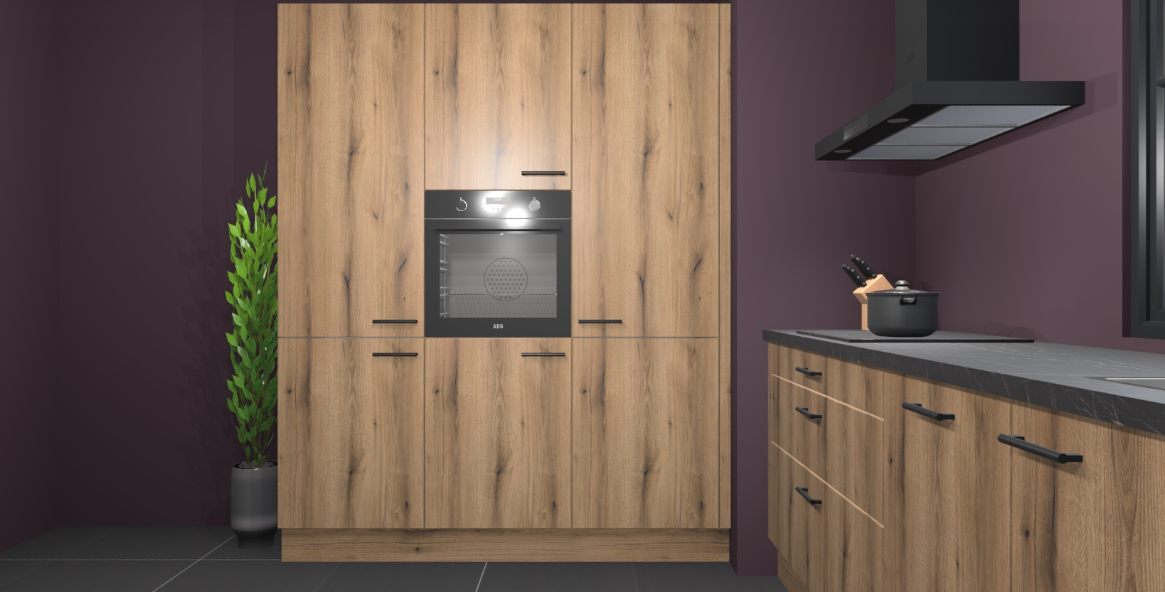 De softclose deuren openen en sluiten is ook heel eenvoudig - geniet van een moeiteloze keukenervaring, zelfs als er kinderen rondlopen. Voor extra gemak bij het plaatsen van uw bestelling bieden we ook een upgrade naar een kookplaat met geïntegreerde afzuiging.