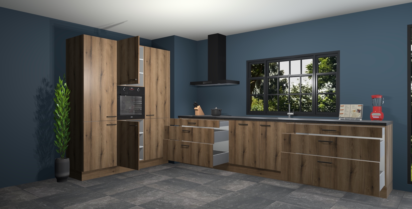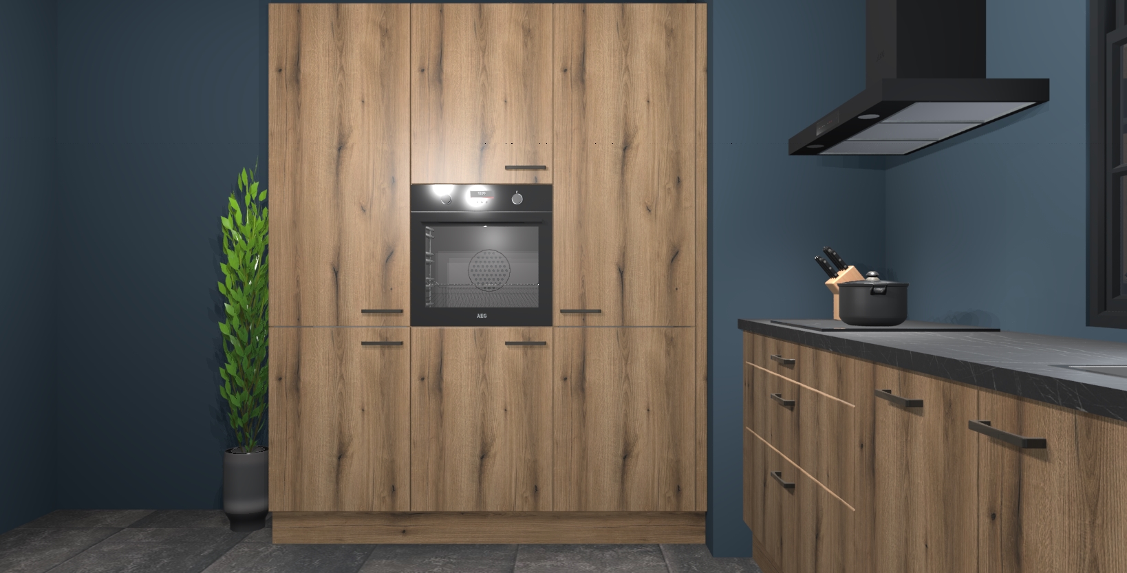 De softclose deuren openen en sluiten is ook heel eenvoudig - geniet van een moeiteloze keukenervaring, zelfs als er kinderen rondlopen. Voor extra gemak bij het plaatsen van uw bestelling bieden we ook een upgrade naar een kookplaat met geïntegreerde afzuiging.