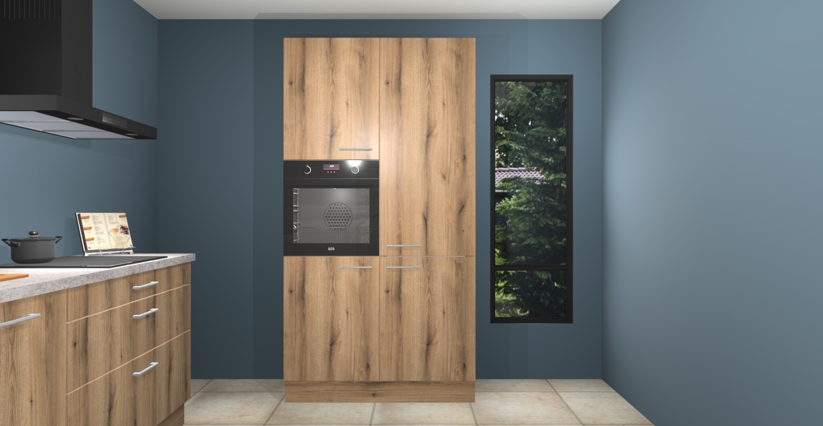 De setting is compleet gemaakt door de vijf inbouwapparaten: wanneer u gaat bestellen kunt u upgraden naar AEG-apparaten als oven, inductieplaat, afzuigkap, vaatwasser en koelkast. Kiest u voor onze Gouden eiken keuken Monaco, dan weet u zeker dat u te maken heeft met Duitse kwaliteit. Bovendien is er altijd sprake van een lage prijs en profiteren we aantrekkelijk leveringstermijn: die bedraagt slechts 7 weken ! Om het extra makkelijk te maken worden de keukenkasten reeds voorgemonteerd geleverd.