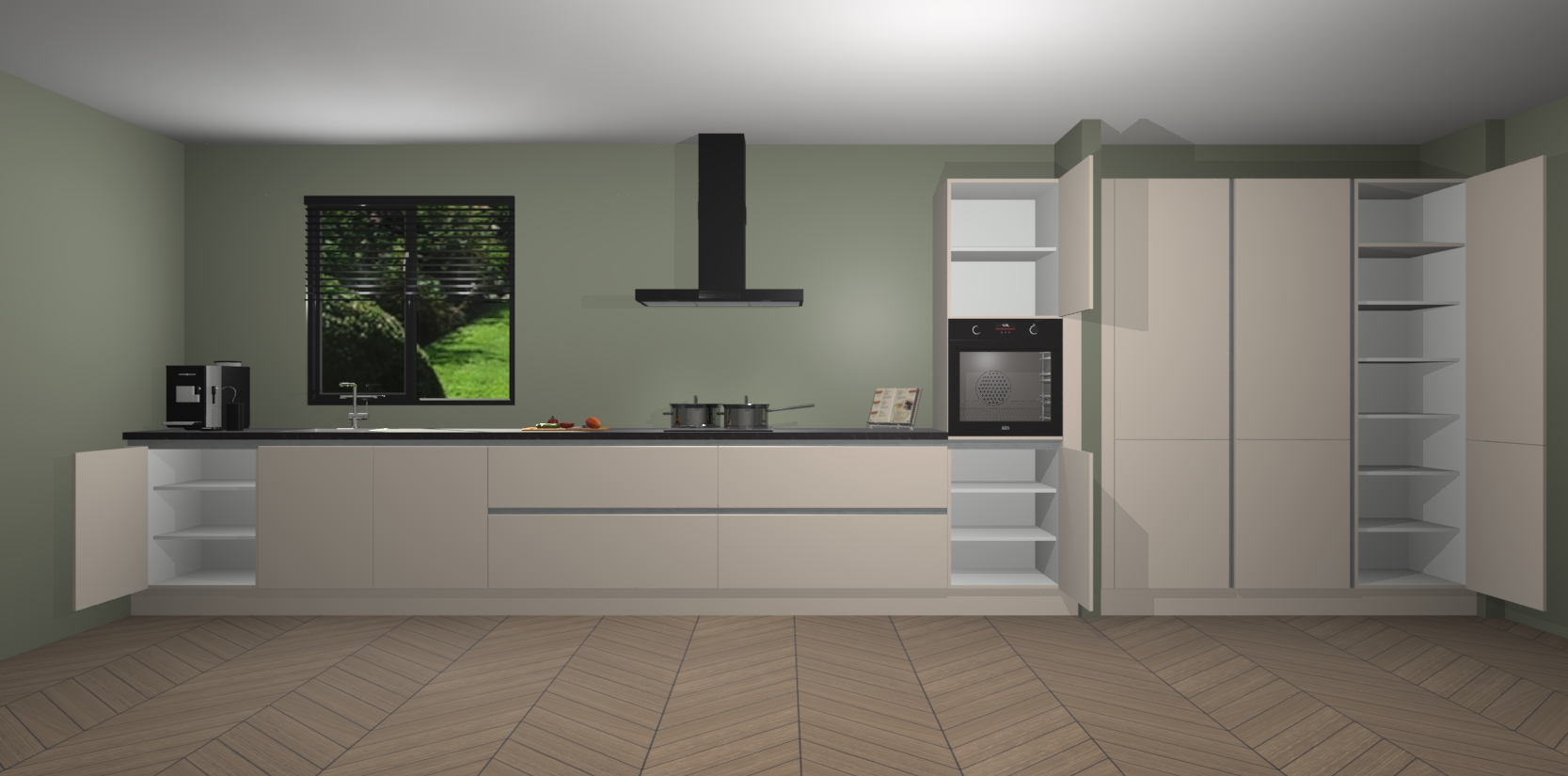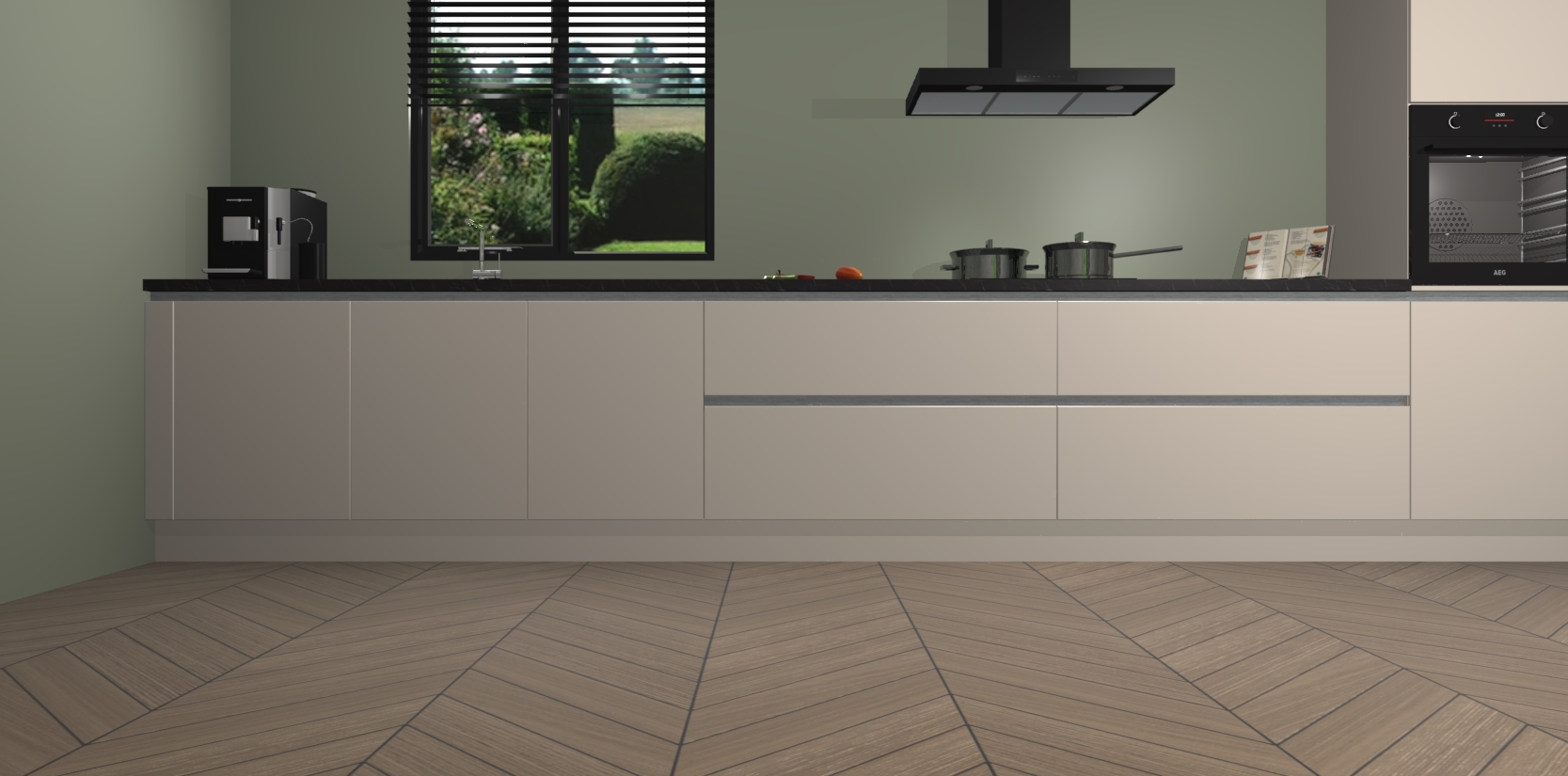 Een stijlvolle en praktische keuken als deze mag gezien worden. Dankzij de prachtige matte afwerking wordt de keuken gemakkelijk het middelpunt van uw huis - hij ziet er geweldig uit onder allerlei lichtomstandigheden, van dag tot nacht!