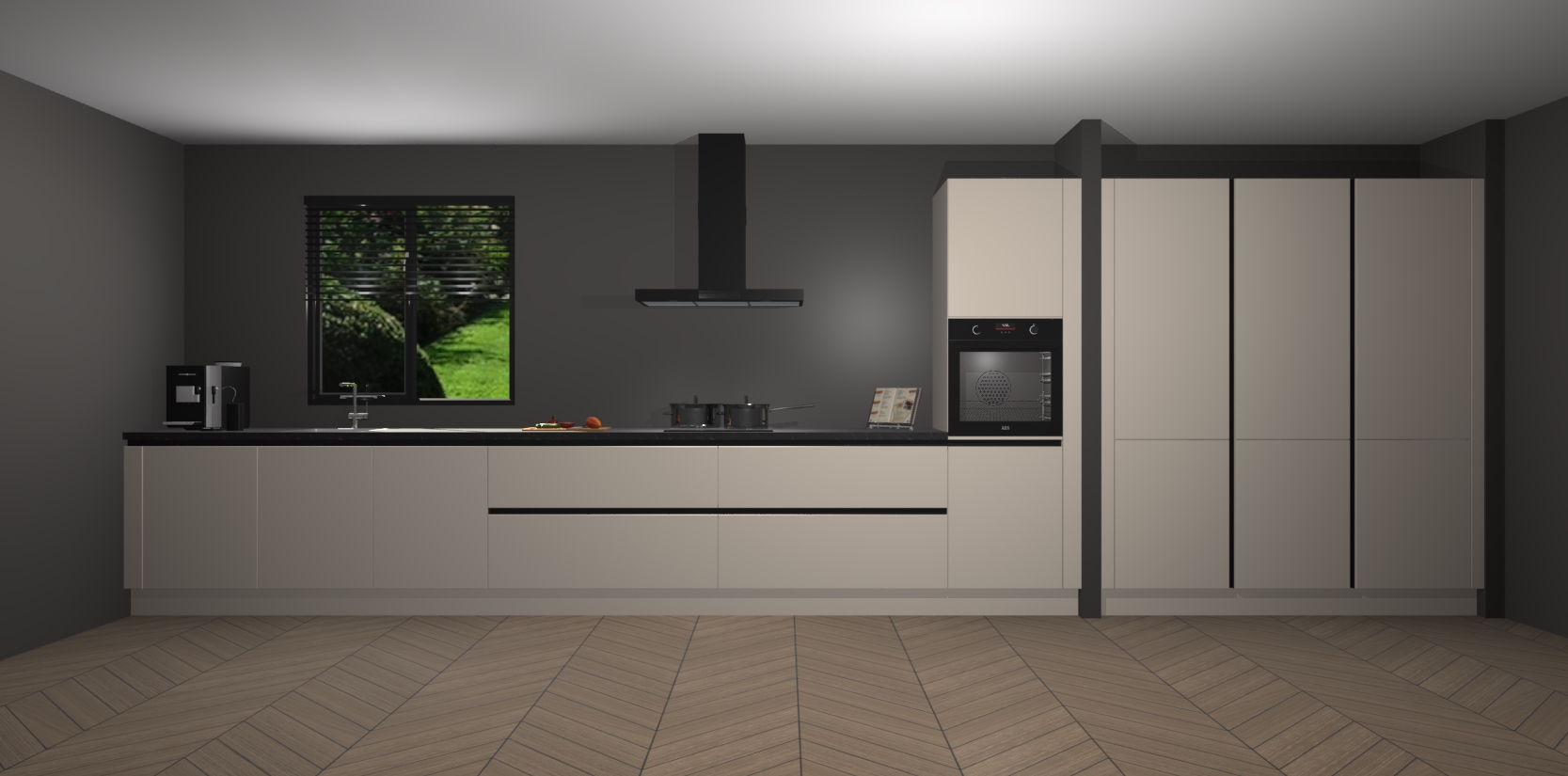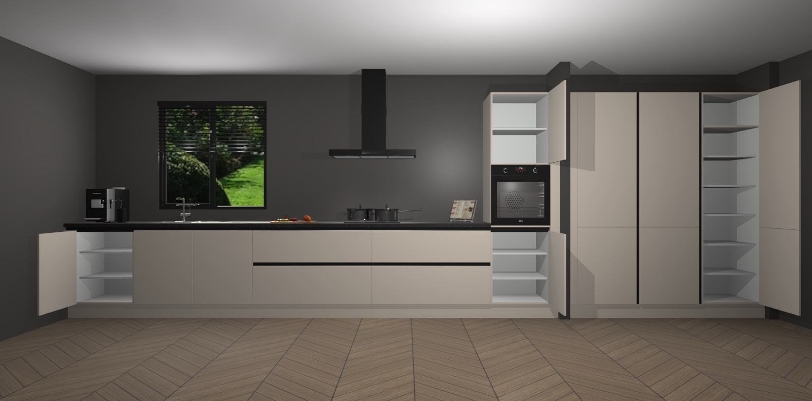 Een stijlvolle en praktische keuken als deze mag gezien worden. Dankzij de prachtige matte afwerking wordt de keuken gemakkelijk het middelpunt van uw huis - hij ziet er geweldig uit onder allerlei lichtomstandigheden, van dag tot nacht!