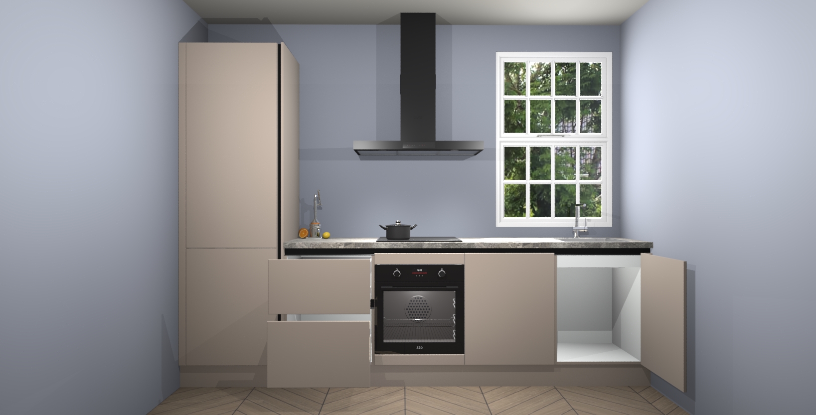 Inclusief plinten, stelpoten en werkblad