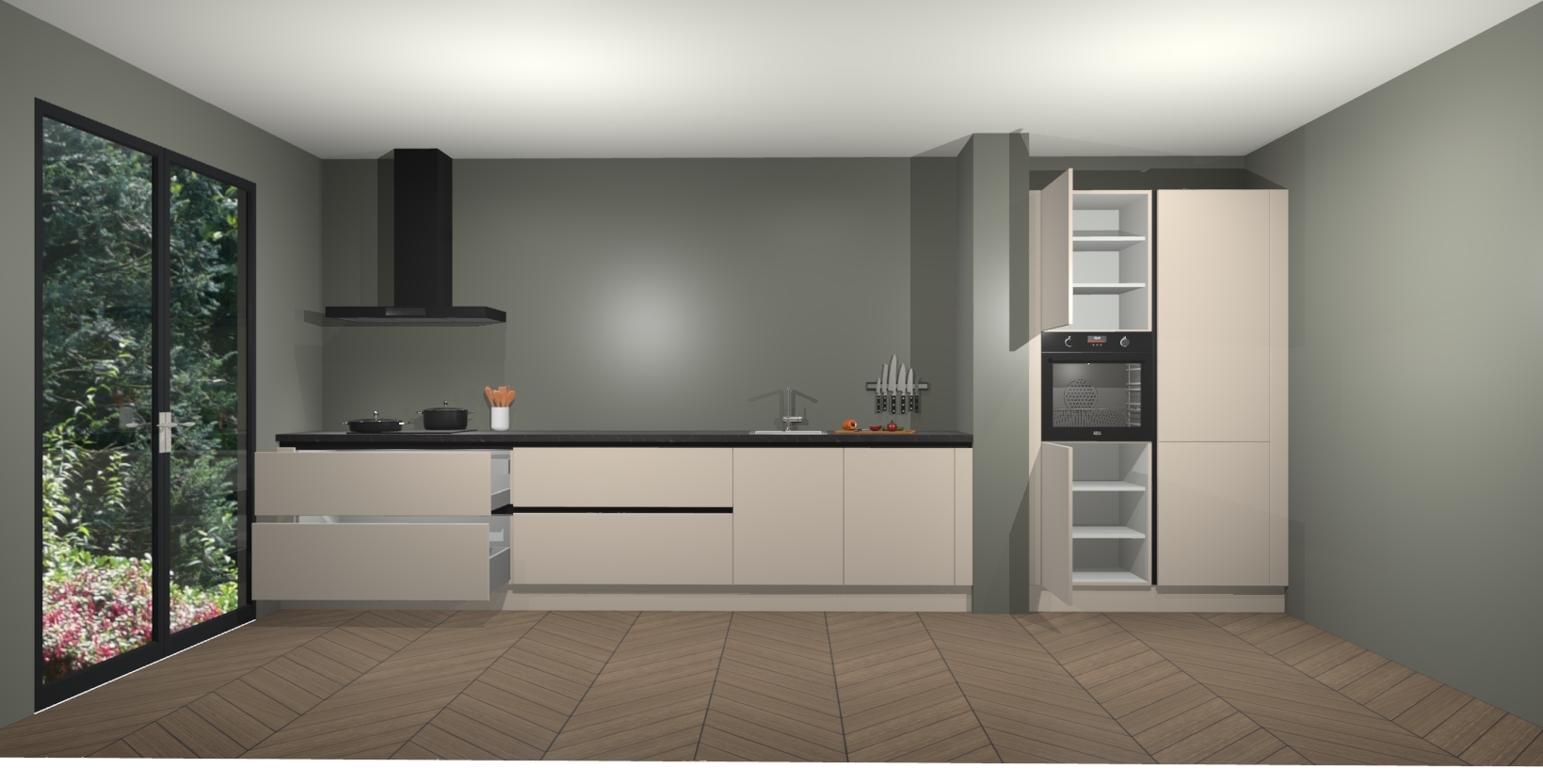 Met de Kasjmier greeploze keuken Calgary Maakt u van uw keuken het pronkstuk van uw huis. Stijlvol en toch praktisch, de nieuwste look voor wie meer waarde en charme aan zijn huis wil toevoegen. Met prachtige handgrepen die zich lenen voor een klassieke stijlbron, zal u niet teleurgesteld zijn in het resultaat. De soft-close deurscharnieren geven een gevoel van luxe omdat ze zachtjes bewegen zonder storende of krakende geluiden te veroorzaken.