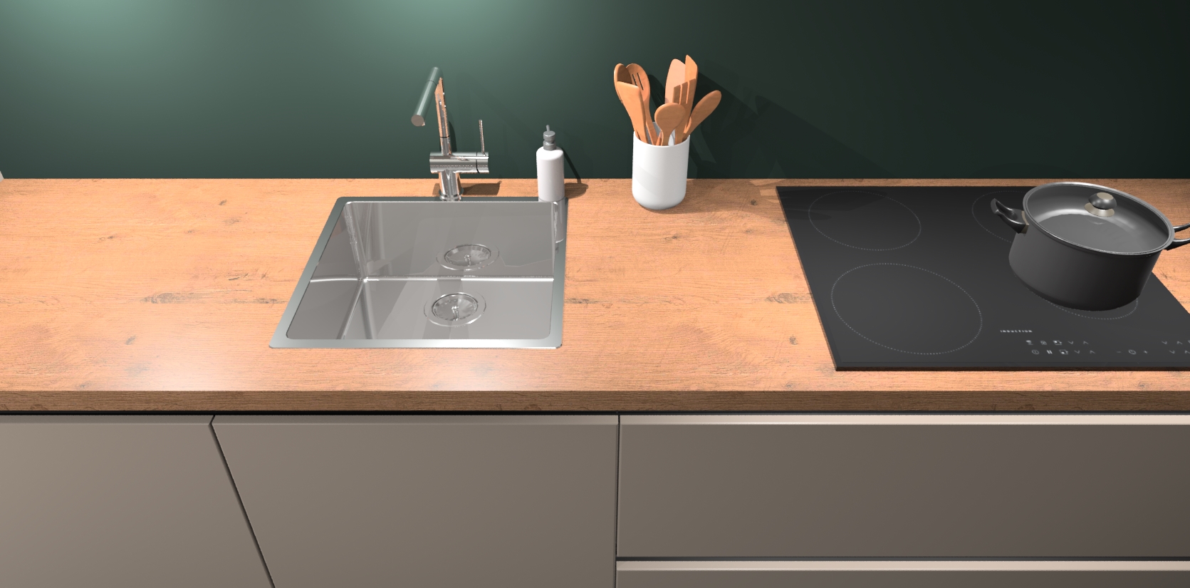 - Uitsparing van kookplaat, spoelbak en kraan dient u zelf te verzorgen.