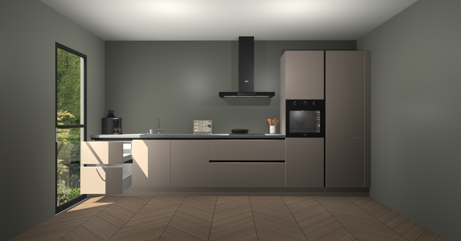 De Kasjmier greeploze keuken Leuven is de perfecte mix van modern en tijdloos design. Met zijn prachtige glazen deuren op de bovenkastjes voegt hij echt iets speciaals en unieks toe aan elke keuken. En met vijf ingebouwde apparaten inbegrepen - een oven, inductiekookplaat, afzuigkap, vaatwasser en koelkast - kunt u deze keuken echt helemaal van uzelf maken! U kunt na bestelling ook upgraden naar AEG voor een nog hogere kwaliteitservaring.