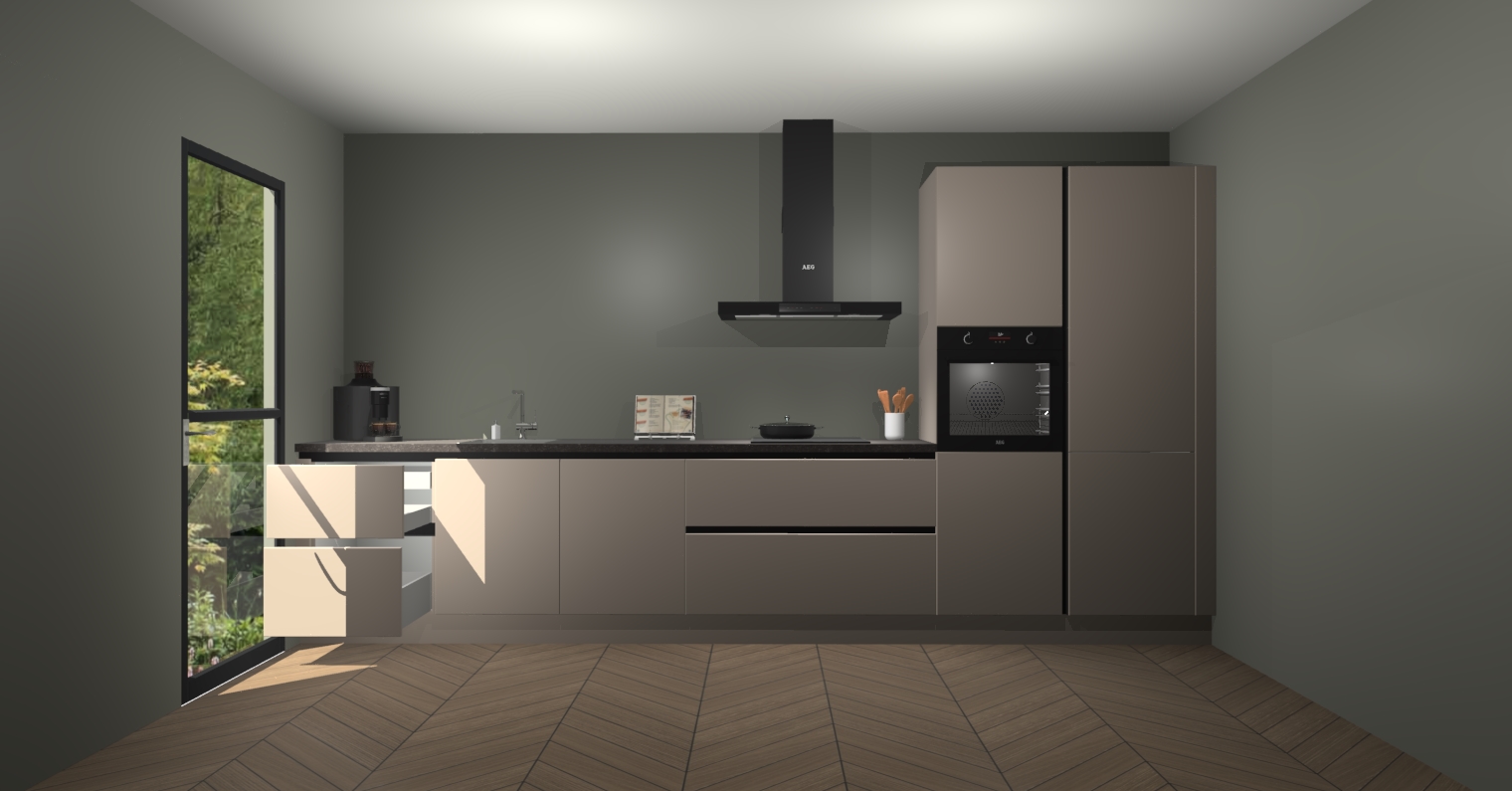 De Kasjmier greeploze keuken Leuven is de perfecte mix van modern en tijdloos design. Met zijn prachtige glazen deuren op de bovenkastjes voegt hij echt iets speciaals en unieks toe aan elke keuken. En met vijf ingebouwde apparaten inbegrepen - een oven, inductiekookplaat, afzuigkap, vaatwasser en koelkast - kunt u deze keuken echt helemaal van uzelf maken! U kunt na bestelling ook upgraden naar AEG voor een nog hogere kwaliteitservaring.