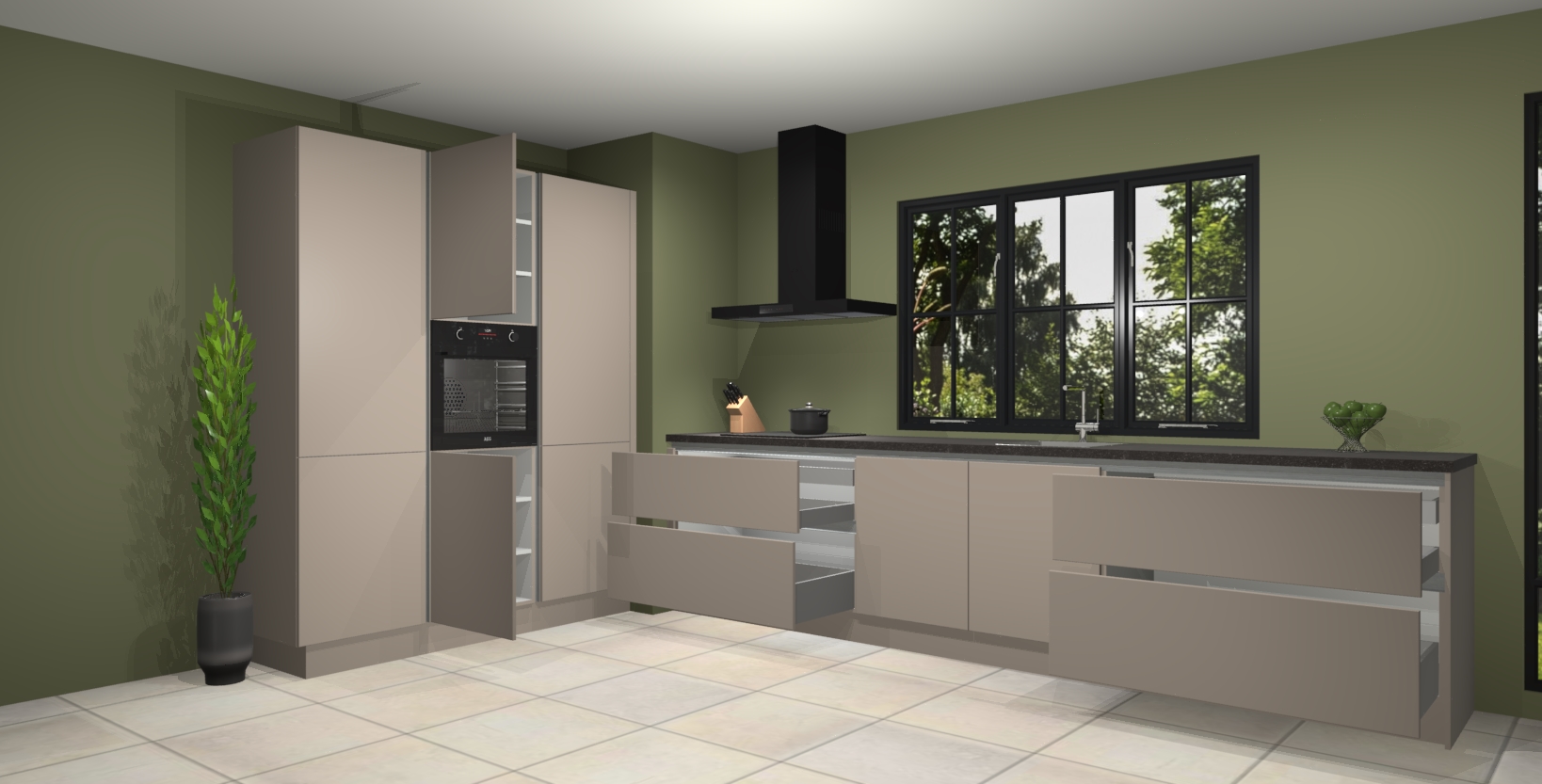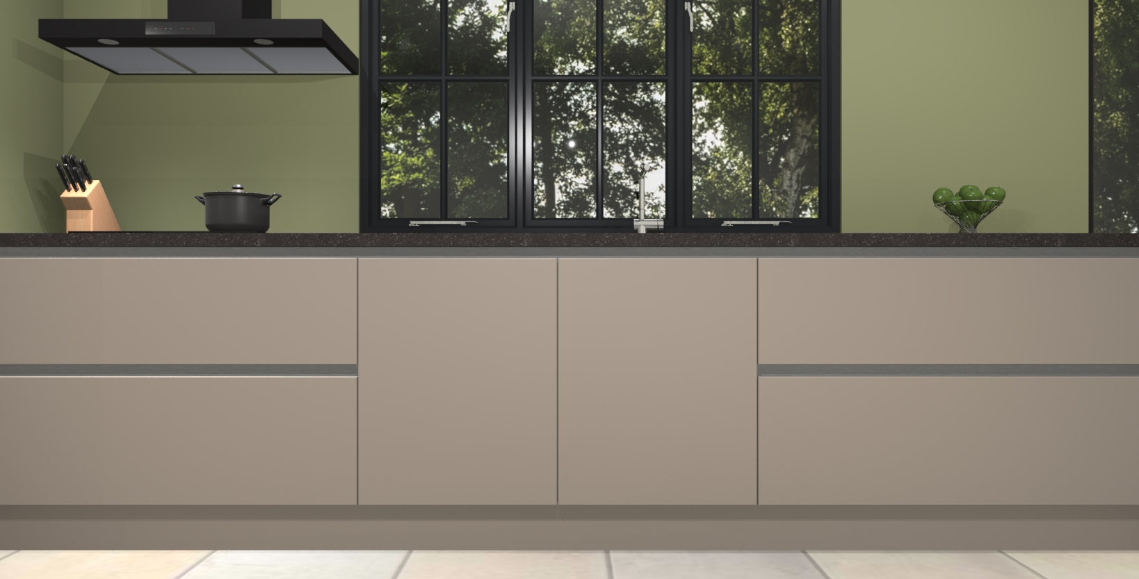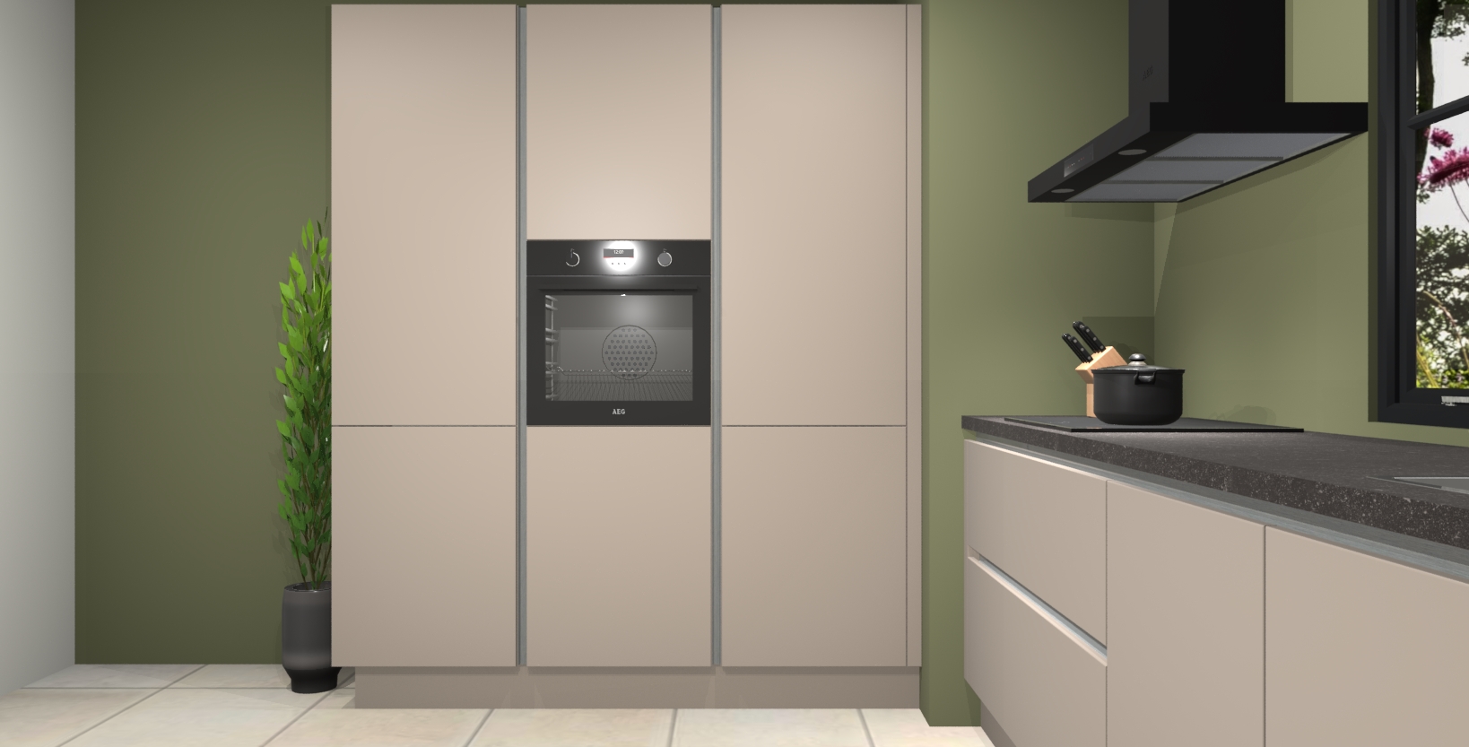 De softclose deuren openen en sluiten is ook heel eenvoudig - geniet van een moeiteloze keukenervaring, zelfs als er kinderen rondlopen. Voor extra gemak bij het plaatsen van uw bestelling bieden we ook een upgrade naar een kookplaat met geïntegreerde afzuiging.