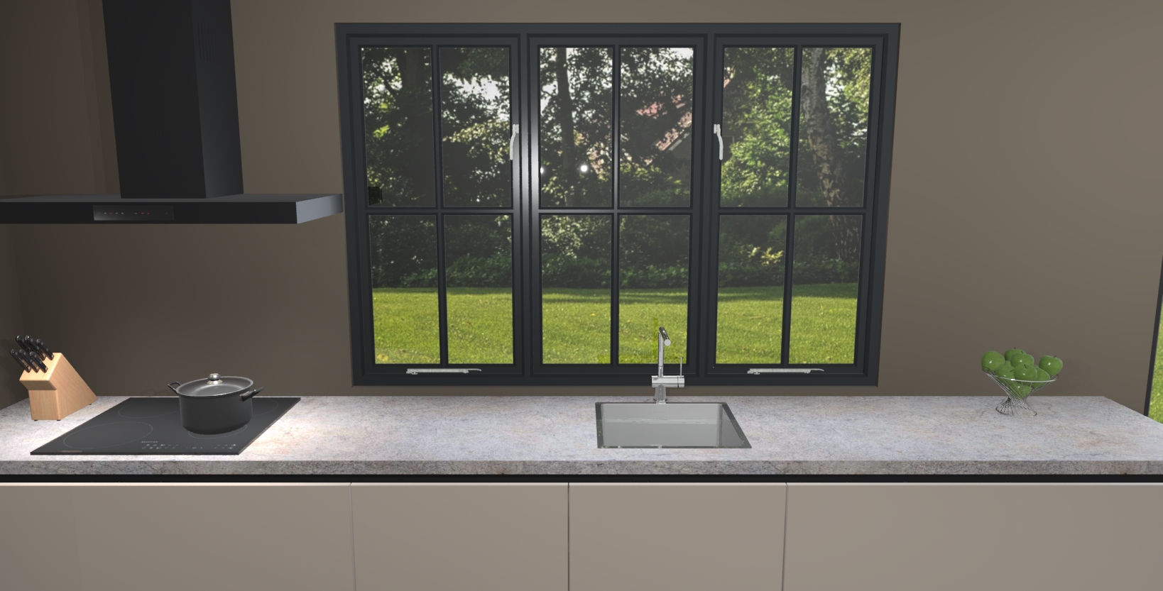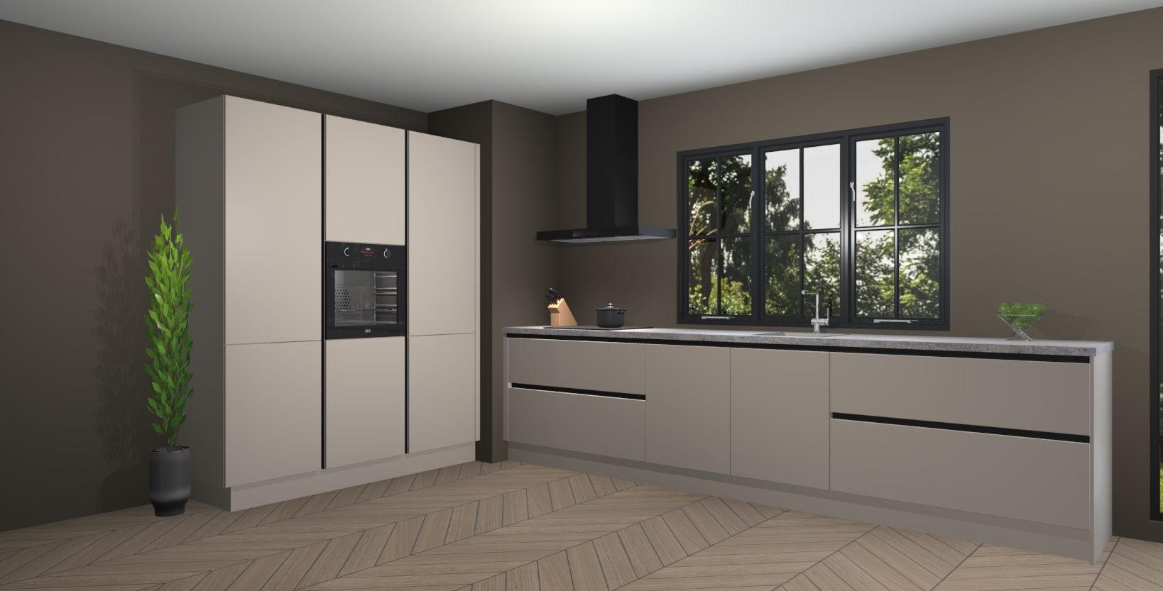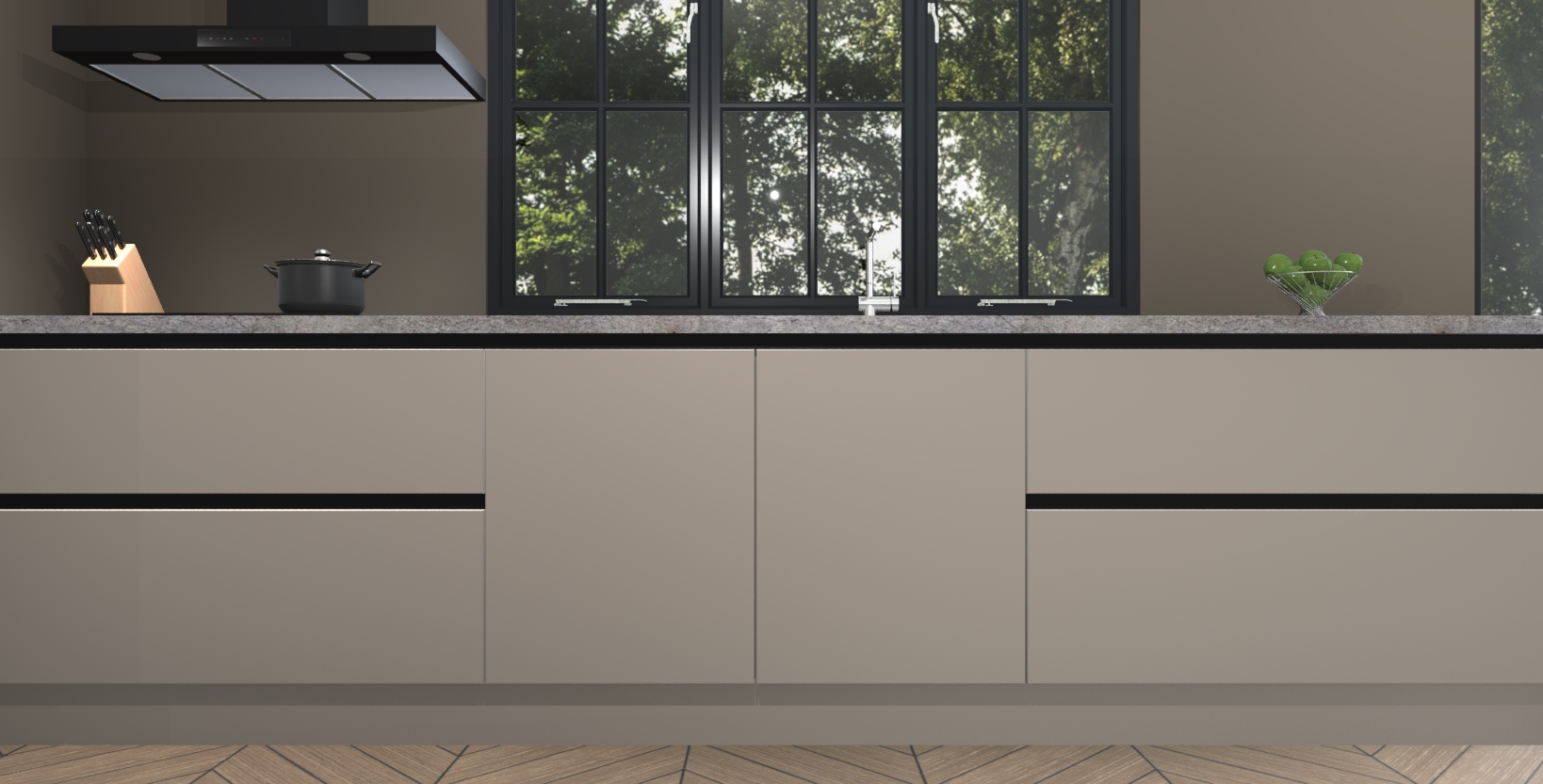 De softclose deuren openen en sluiten is ook heel eenvoudig - geniet van een moeiteloze keukenervaring, zelfs als er kinderen rondlopen. Voor extra gemak bij het plaatsen van uw bestelling bieden we ook een upgrade naar een kookplaat met geïntegreerde afzuiging.