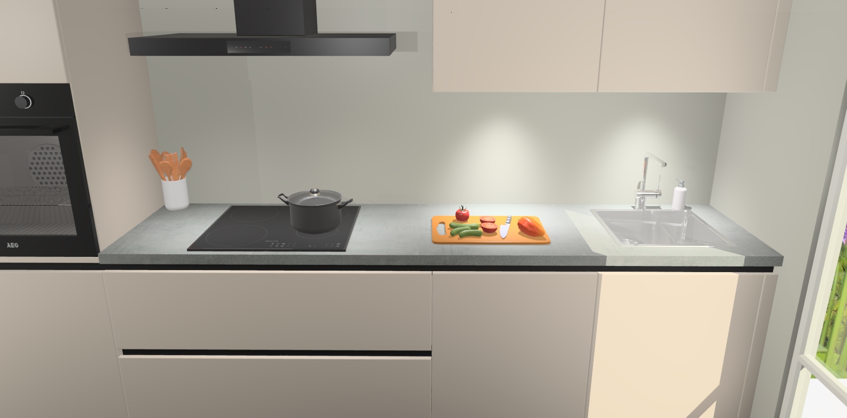 - Uitsparing van kookplaat, spoelbak en kraan dient u zelf te verzorgen.