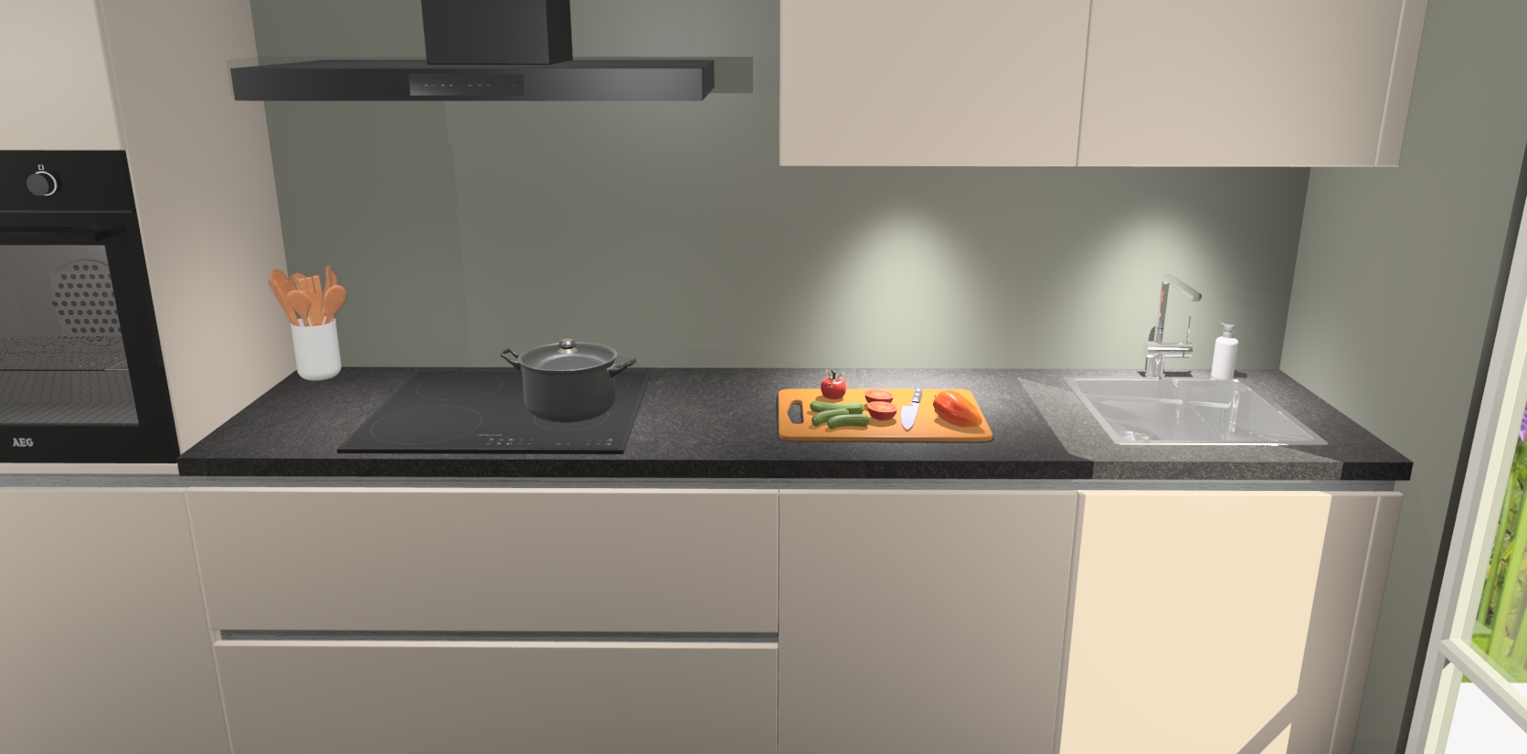 - Uitsparing van kookplaat, spoelbak en kraan dient u zelf te verzorgen.