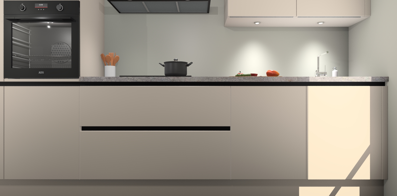 Inclusief plinten, stelpoten en werkblad