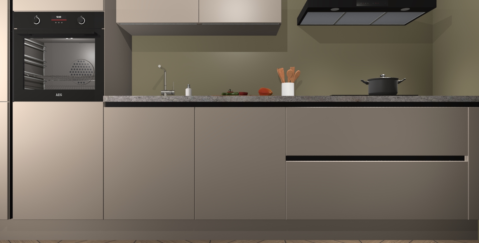 Inclusief plinten, stelpoten en werkblad