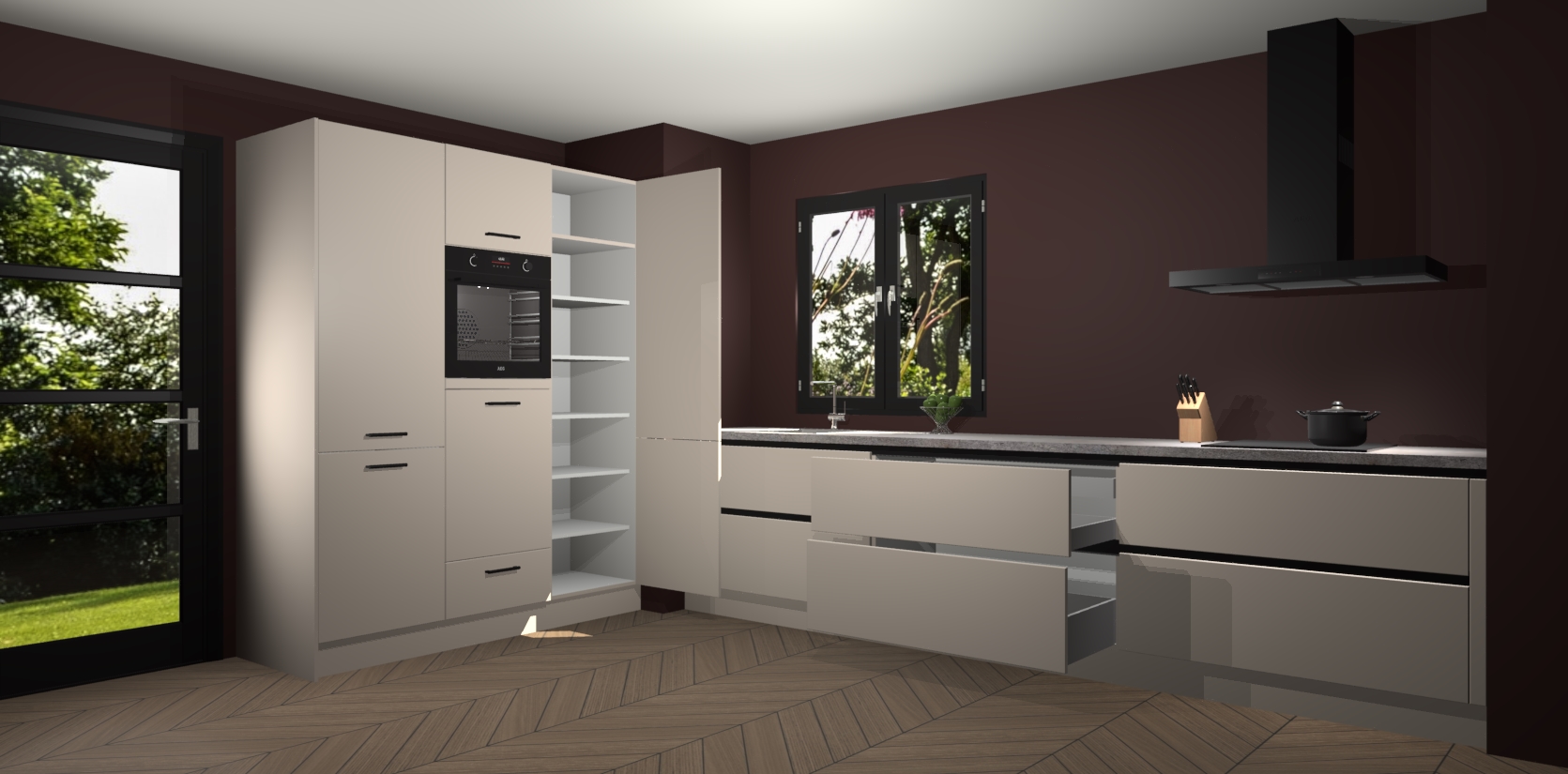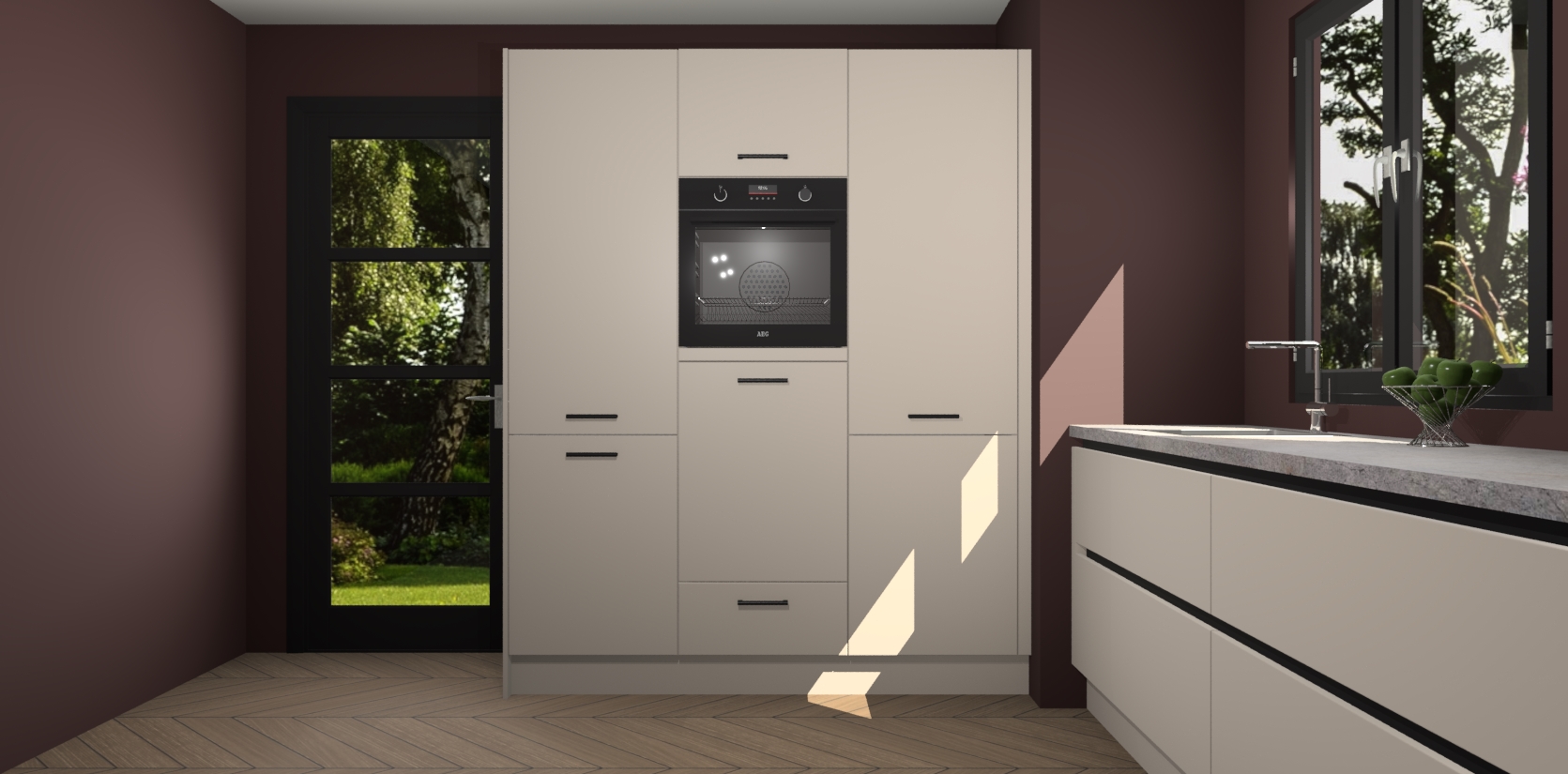 De softclose deuren openen en sluiten is ook heel eenvoudig - geniet van een moeiteloze keukenervaring, zelfs als er kinderen rondlopen. Voor extra gemak bij het plaatsen van uw bestelling bieden we ook een upgrade naar een kookplaat met geïntegreerde afzuiging.