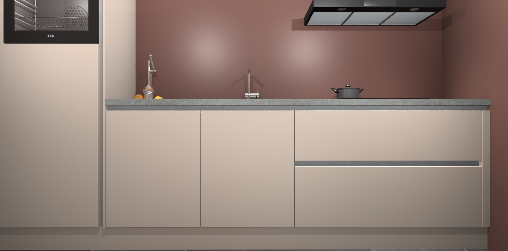 Inclusief plinten, stelpoten en werkblad