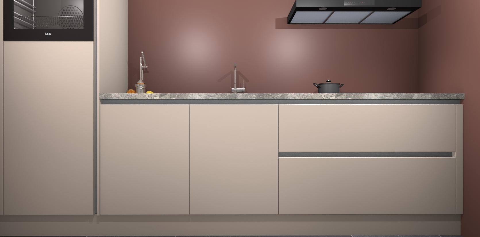 Inclusief plinten, stelpoten en werkblad