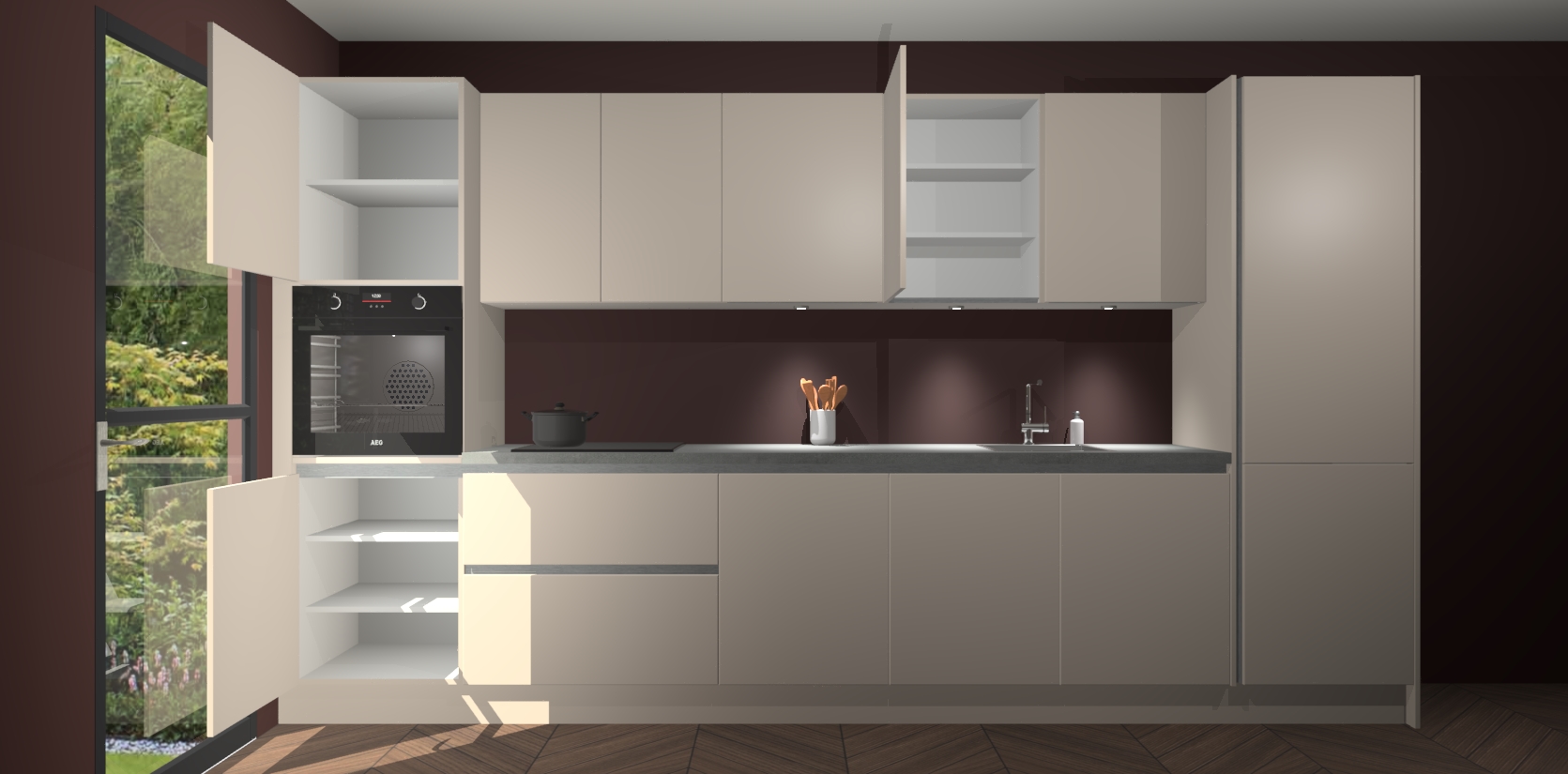 Dit is de perfecte keuken voor wie op zoek is naar een luxueuze stijl zonder zijn portemonnee te legen! Het chique ontwerp van de kasjmier greeploze keuken Wels voegt dat vleugje verfijning toe aan elk huis. Het gemak van voorgemonteerde kasten bespaart u talloze uren tijd en energie, zodat u veel sneller dan verwacht kunt beginnen te genieten van uw prachtige nieuwe keuken. Bovendien bedraagt de levertijd slechts 7 weken.