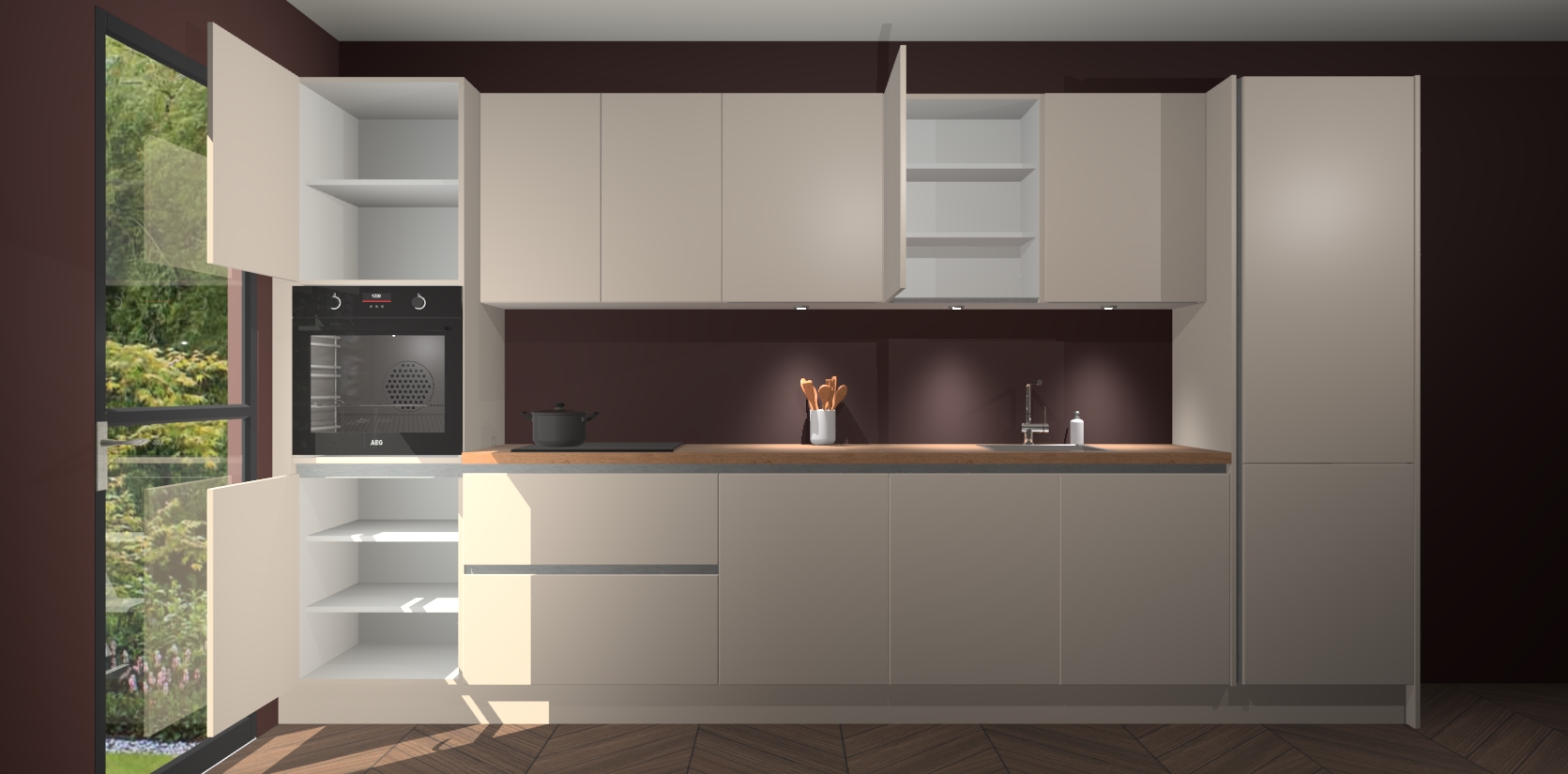 Dit is de perfecte keuken voor wie op zoek is naar een luxueuze stijl zonder zijn portemonnee te legen! Het chique ontwerp van de kasjmier greeploze keuken Wels voegt dat vleugje verfijning toe aan elk huis. Het gemak van voorgemonteerde kasten bespaart u talloze uren tijd en energie, zodat u veel sneller dan verwacht kunt beginnen te genieten van uw prachtige nieuwe keuken. Bovendien bedraagt de levertijd slechts 7 weken.