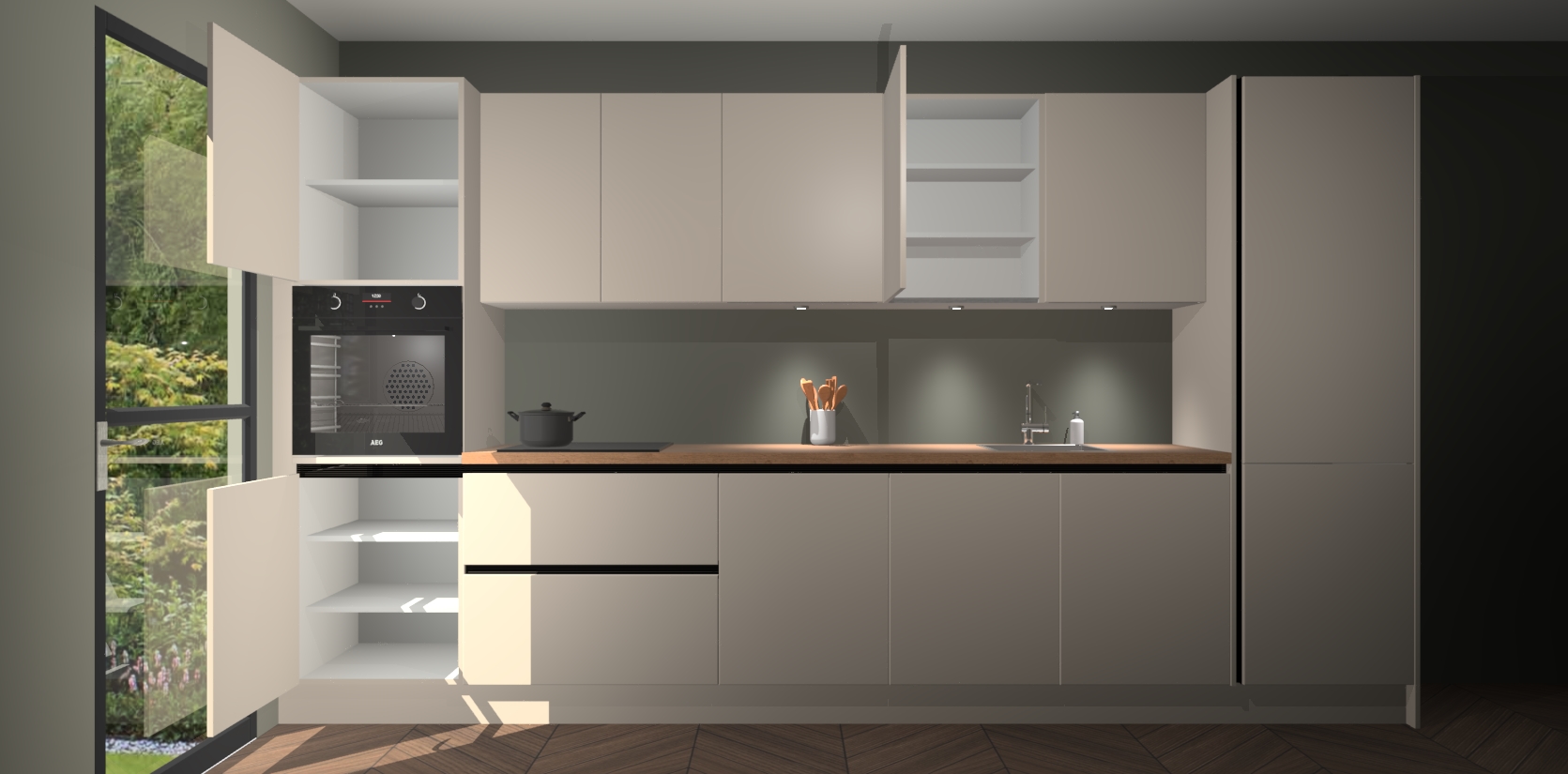 Dit is de perfecte keuken voor wie op zoek is naar een luxueuze stijl zonder zijn portemonnee te legen! Het chique ontwerp van de kasjmier greeploze keuken Wels voegt dat vleugje verfijning toe aan elk huis. Het gemak van voorgemonteerde kasten bespaart u talloze uren tijd en energie, zodat u veel sneller dan verwacht kunt beginnen te genieten van uw prachtige nieuwe keuken. Bovendien bedraagt de levertijd slechts 7 weken.