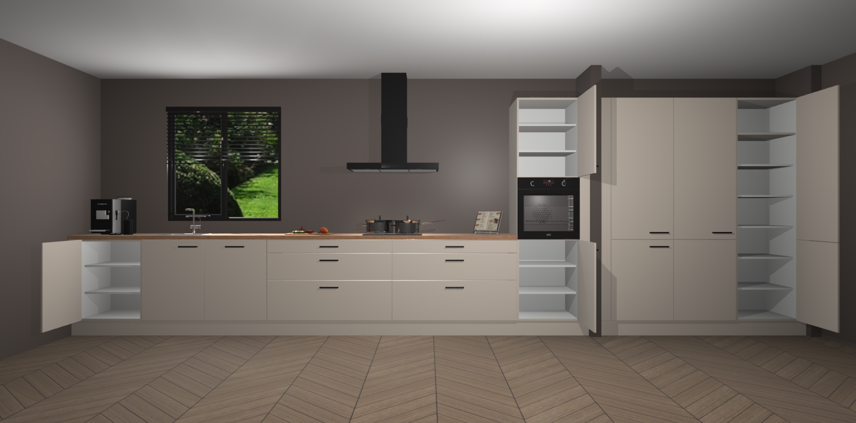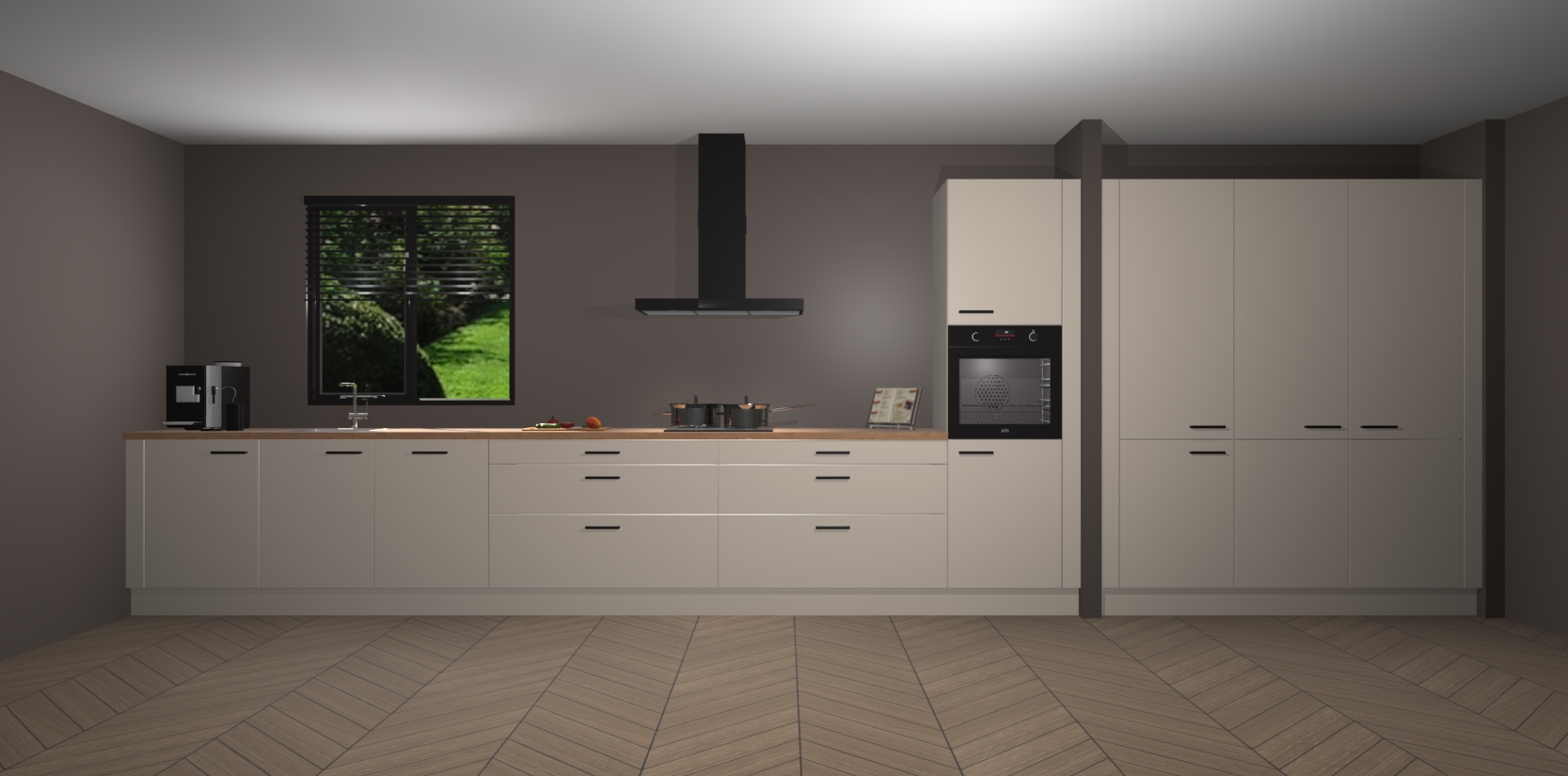 Een stijlvolle en praktische keuken als deze mag gezien worden. Dankzij de prachtige matte afwerking wordt de keuken gemakkelijk het middelpunt van uw huis - hij ziet er geweldig uit onder allerlei lichtomstandigheden, van dag tot nacht!
