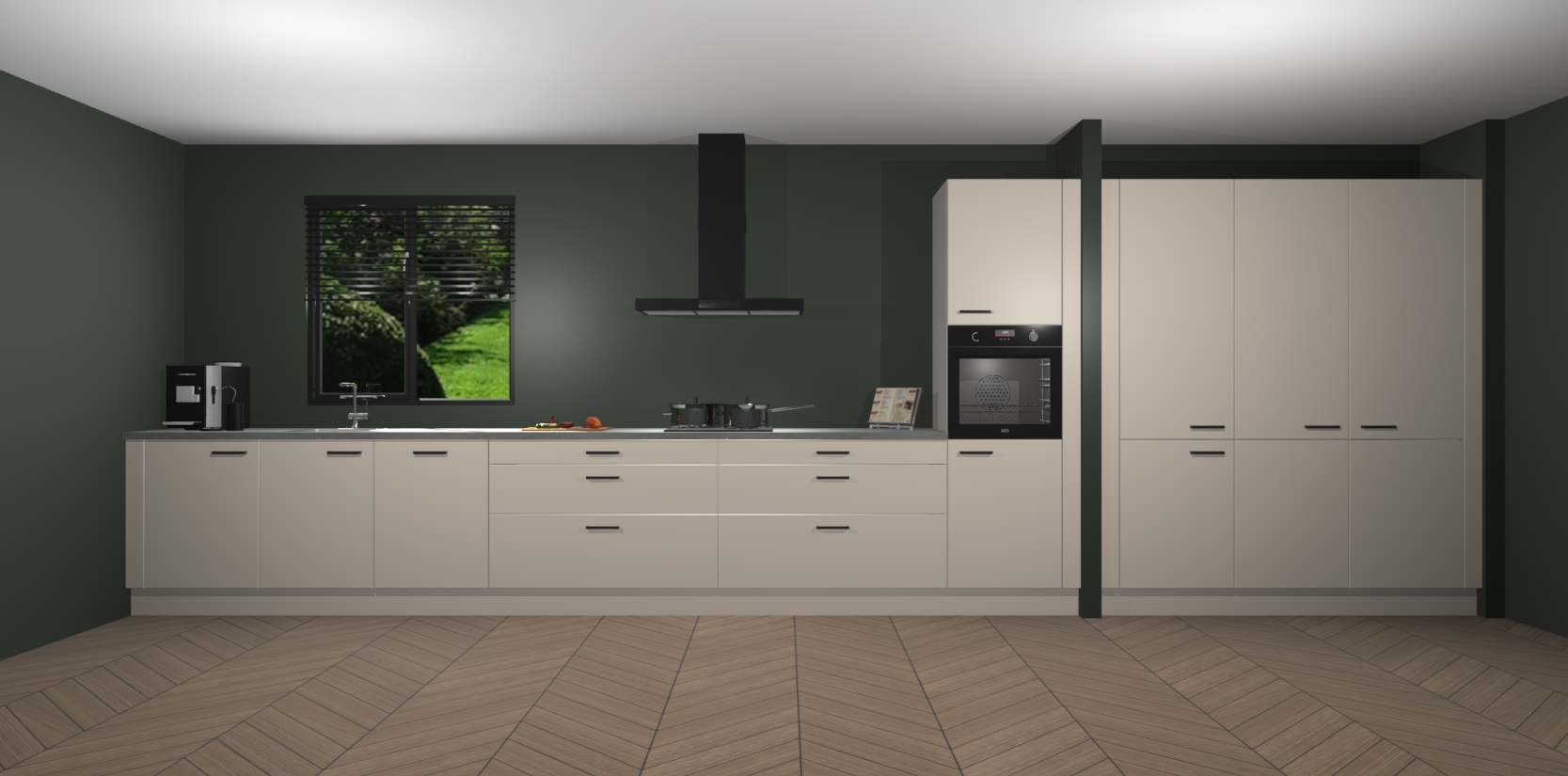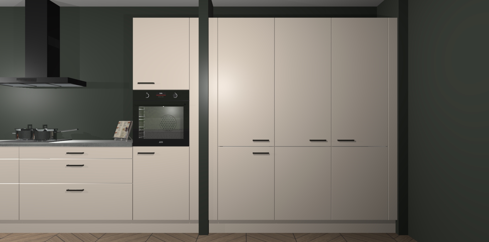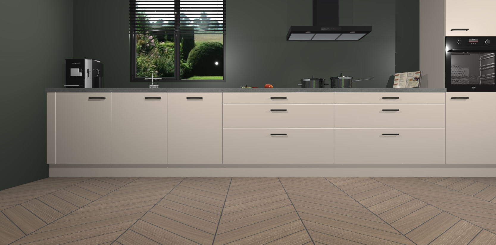 Een stijlvolle en praktische keuken als deze mag gezien worden. Dankzij de prachtige matte afwerking wordt de keuken gemakkelijk het middelpunt van uw huis - hij ziet er geweldig uit onder allerlei lichtomstandigheden, van dag tot nacht!