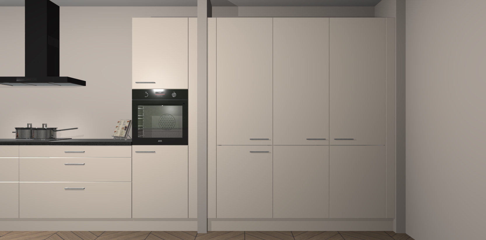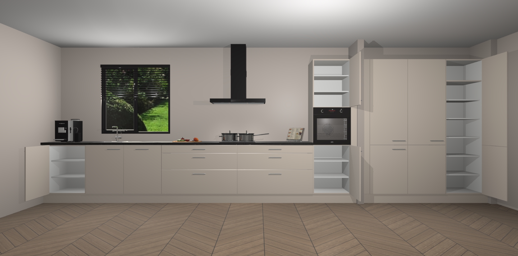 Een stijlvolle en praktische keuken als deze mag gezien worden. Dankzij de prachtige matte afwerking wordt de keuken gemakkelijk het middelpunt van uw huis - hij ziet er geweldig uit onder allerlei lichtomstandigheden, van dag tot nacht!