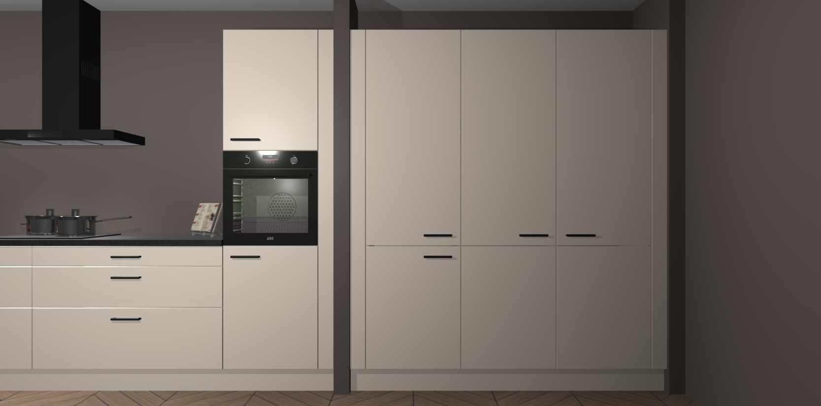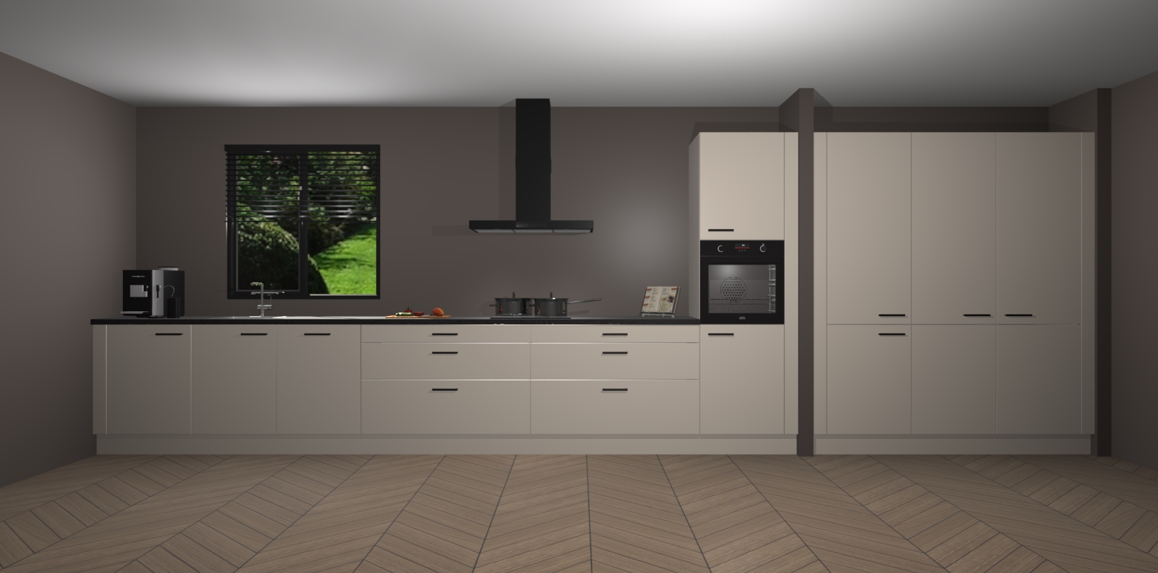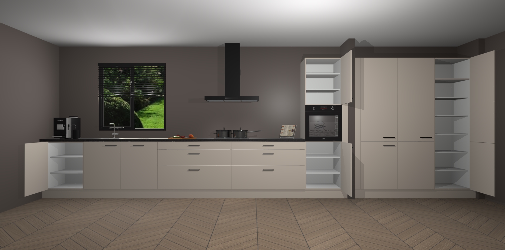 Een stijlvolle en praktische keuken als deze mag gezien worden. Dankzij de prachtige matte afwerking wordt de keuken gemakkelijk het middelpunt van uw huis - hij ziet er geweldig uit onder allerlei lichtomstandigheden, van dag tot nacht!