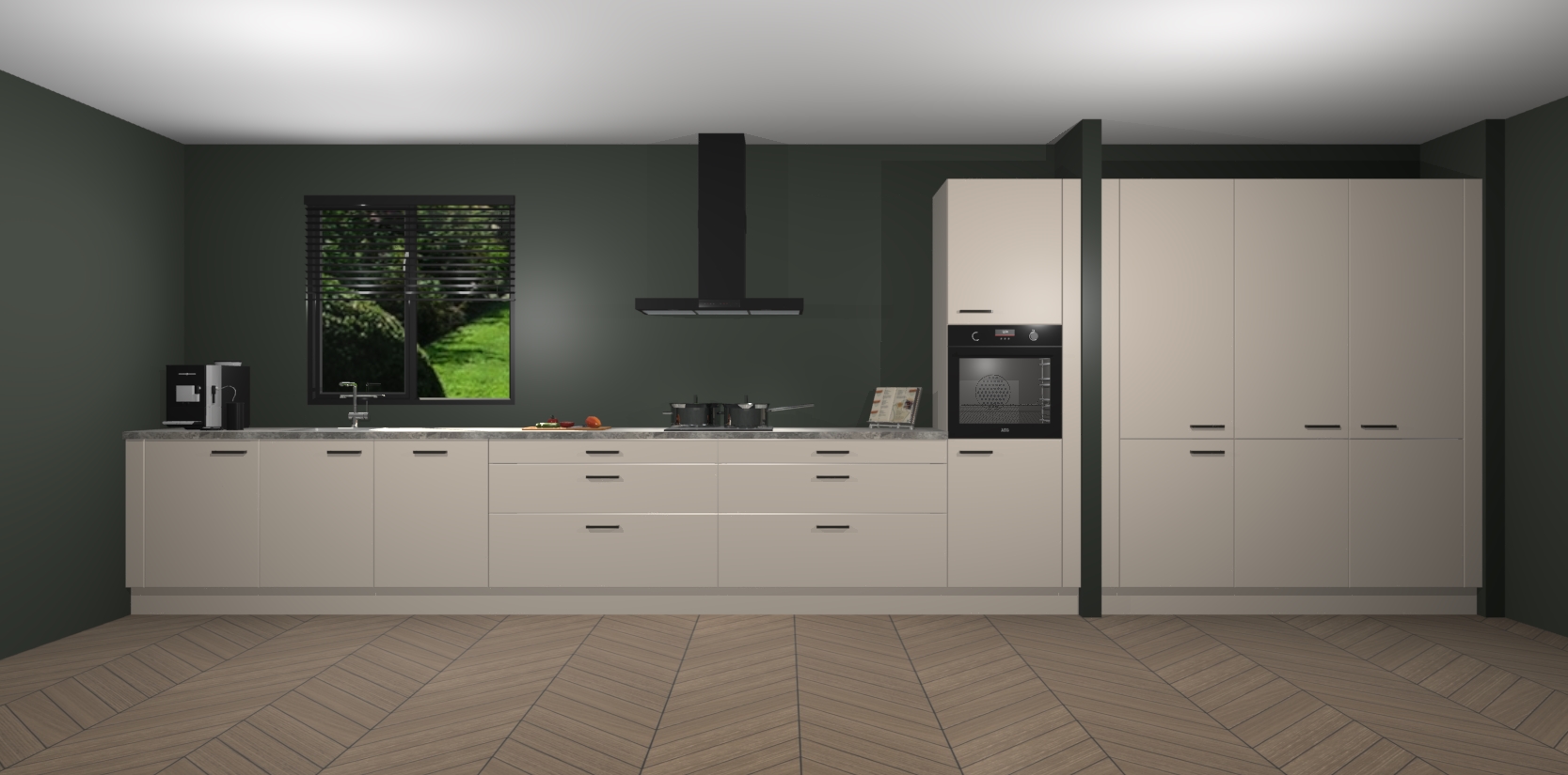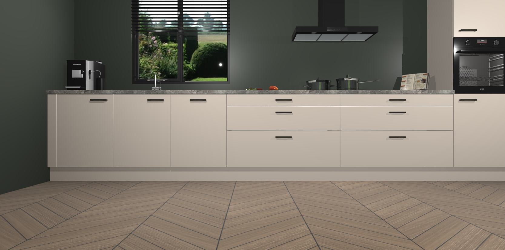 Een stijlvolle en praktische keuken als deze mag gezien worden. Dankzij de prachtige matte afwerking wordt de keuken gemakkelijk het middelpunt van uw huis - hij ziet er geweldig uit onder allerlei lichtomstandigheden, van dag tot nacht!