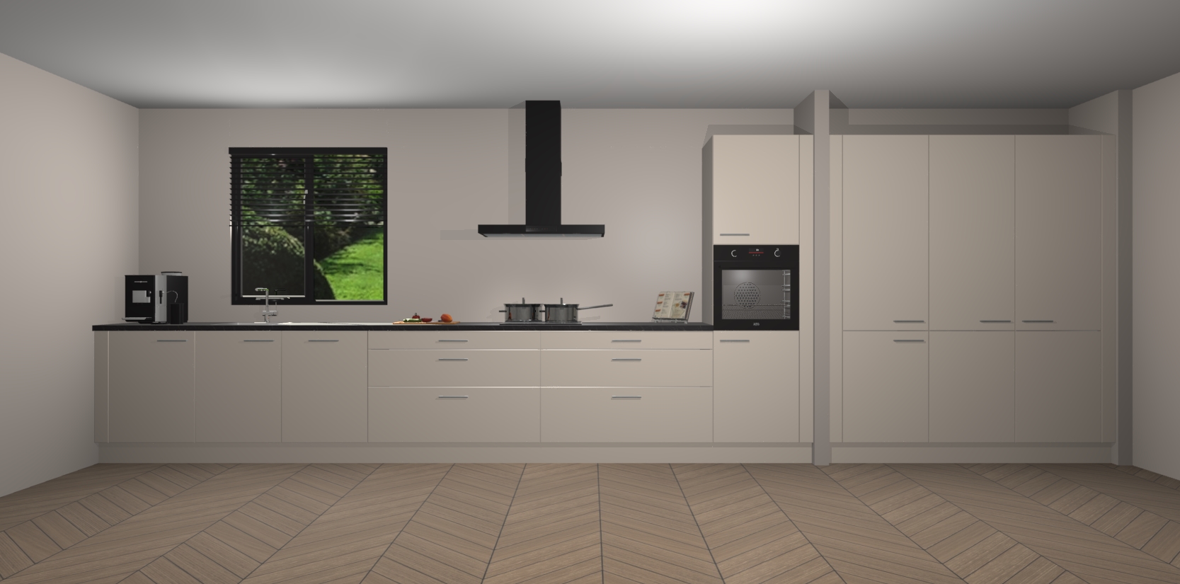 Een stijlvolle en praktische keuken als deze mag gezien worden. Dankzij de prachtige matte afwerking wordt de keuken gemakkelijk het middelpunt van uw huis - hij ziet er geweldig uit onder allerlei lichtomstandigheden, van dag tot nacht!