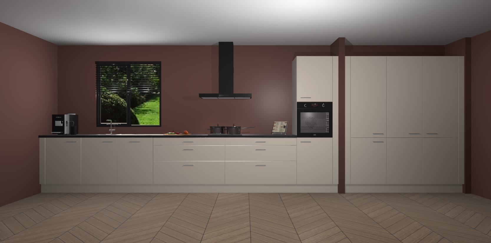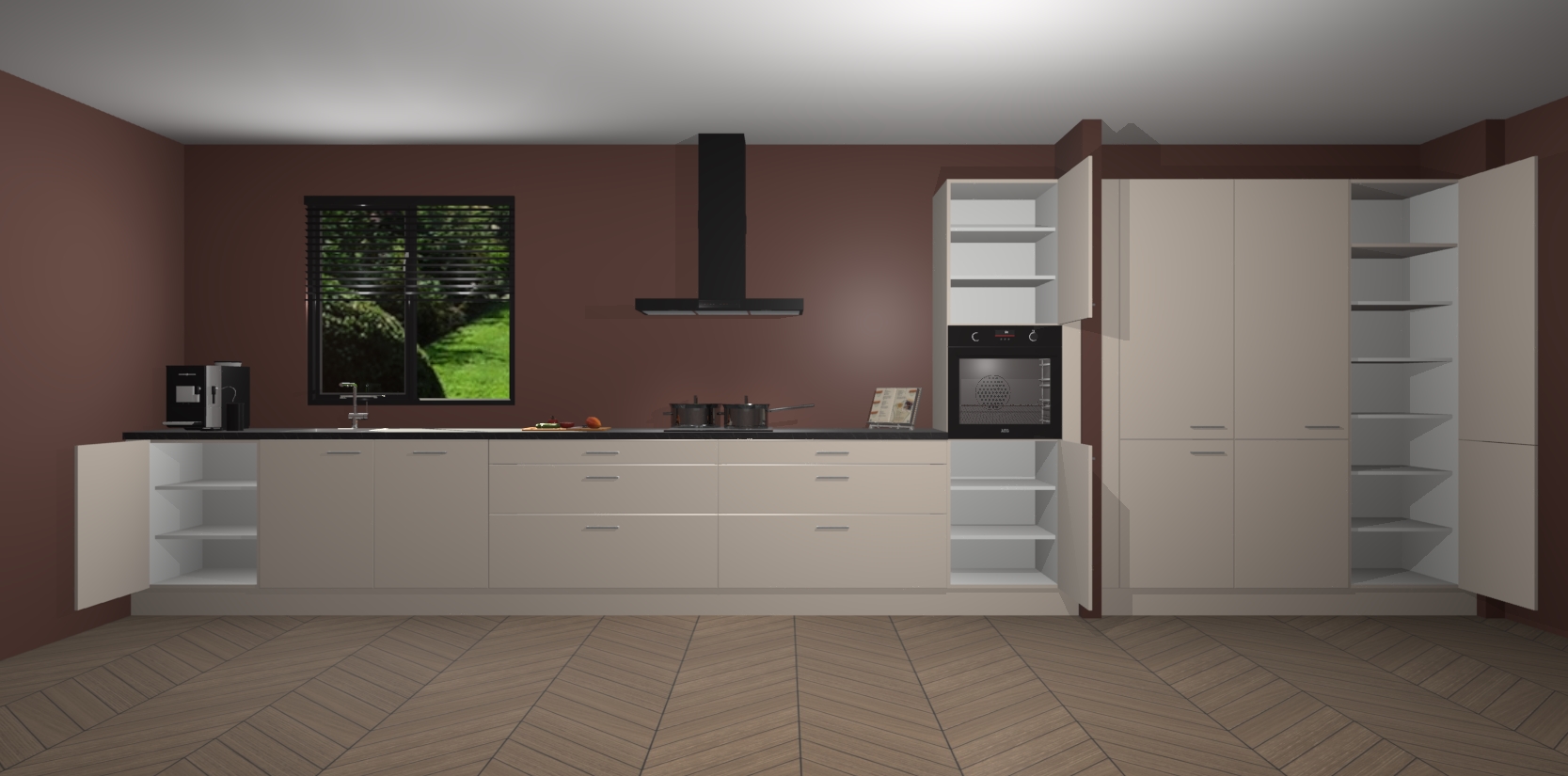 Een stijlvolle en praktische keuken als deze mag gezien worden. Dankzij de prachtige matte afwerking wordt de keuken gemakkelijk het middelpunt van uw huis - hij ziet er geweldig uit onder allerlei lichtomstandigheden, van dag tot nacht!