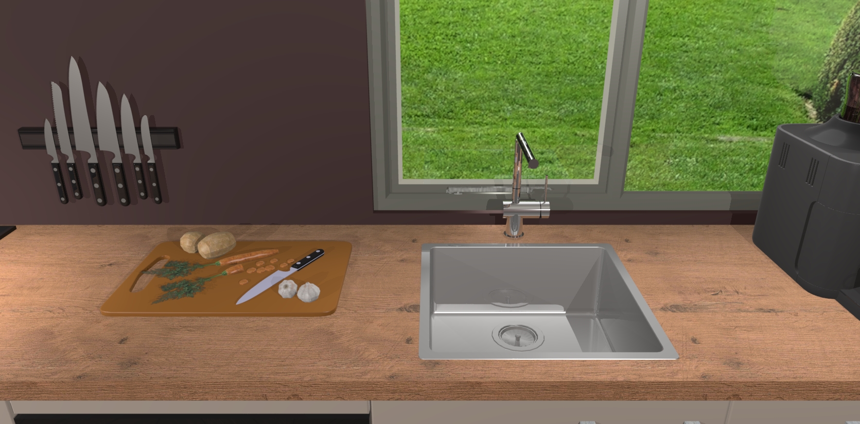 - De spoelbak is nog niet in gevreesd. Dit dient tijdens het werk gedaan te worden
