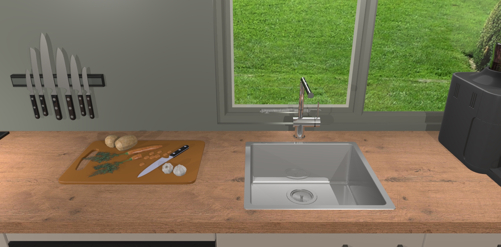 • De spoelbak is nog niet in gevreesd. Dit dient tijdens het werk gedaan te worden