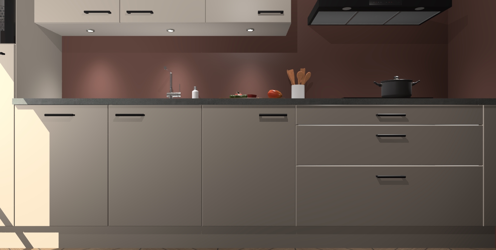 Inclusief plinten, stelpoten en werkblad