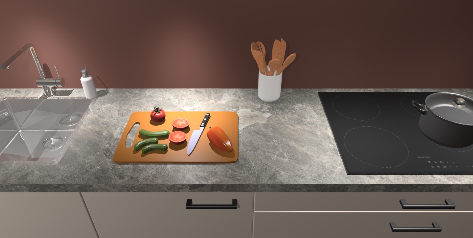 - Uitsparing van kookplaat, spoelbak en kraan dient u zelf te verzorgen.