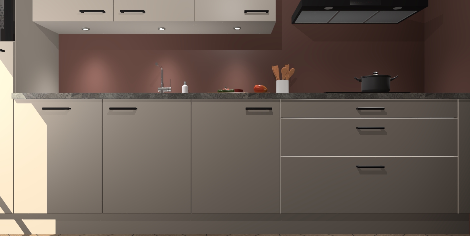 Inclusief plinten, stelpoten en werkblad