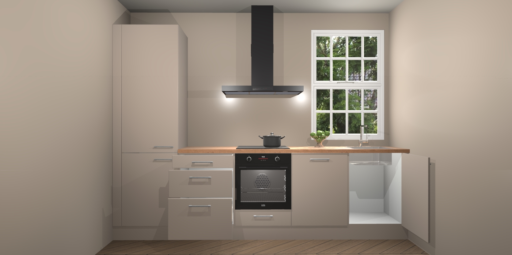 Inclusief plinten, stelpoten en werkblad