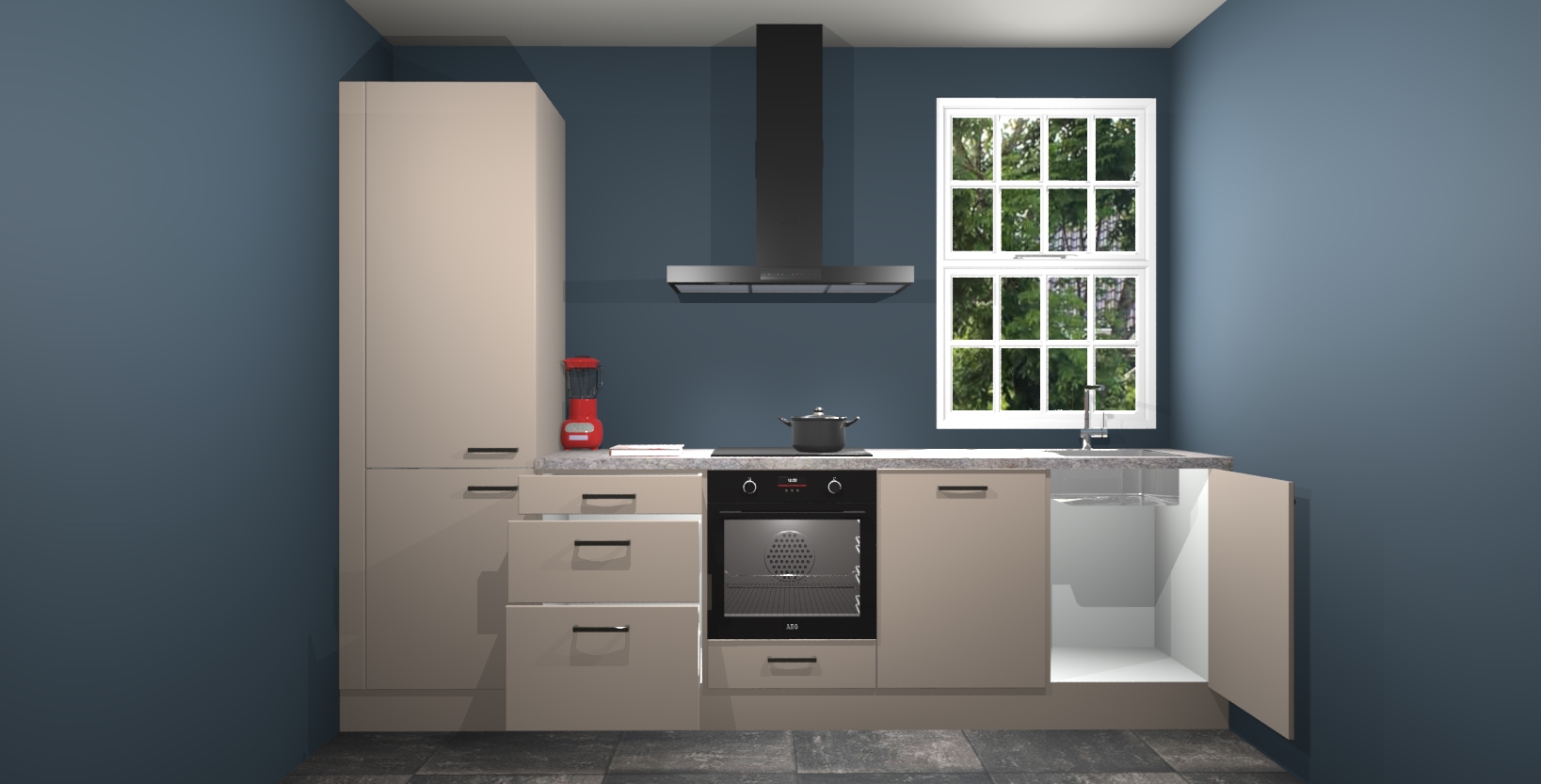 Inclusief plinten, stelpoten en werkblad